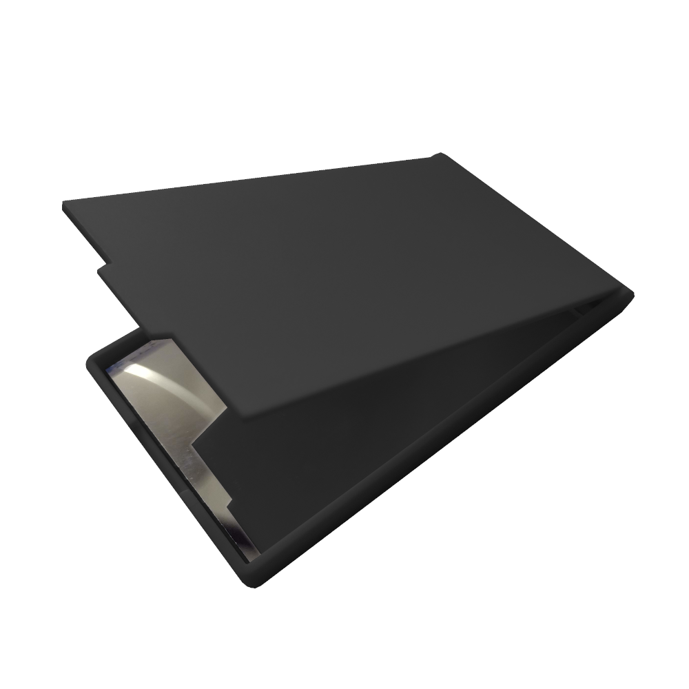 Descripción: Espejo de mano, tipo estuche cerrado con tapa.