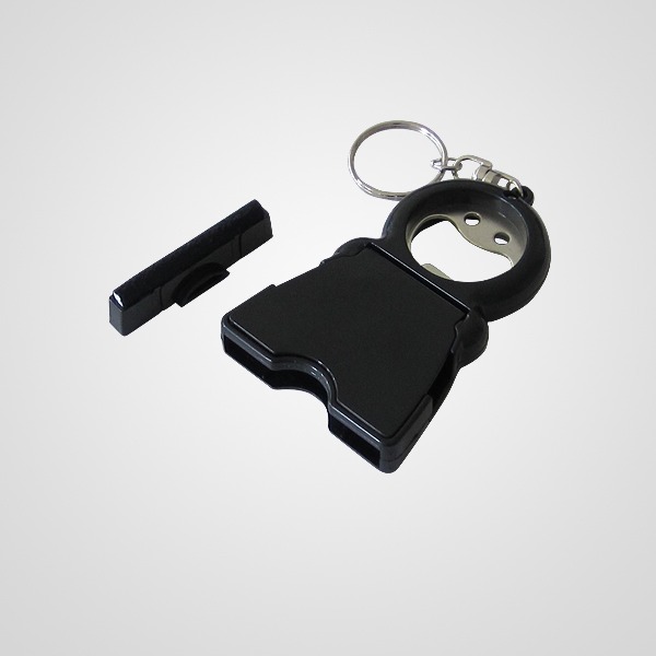Descripción: Llavero Despatador con 3 Funciones, destapador, apertura frontal que lo trasforma en un soporte para celular e incluye insertada una almohadilla para limpieza del cristal del celular.
