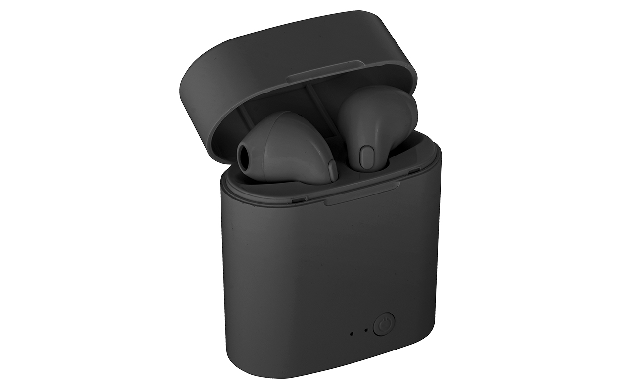 Auriculares inalámbricos True Wireless. Cuenta con micrófono integrado y botón multifunción en ambos auriculares. Tienen una autonomía de 1.5 horas y su caja de carga es de 250 mAh. Incluye un puerto micro USB para su carga. Se suministra en una caja de regalo blanca. Auricular: 4,7 x 1,9 x 0,8 cm | Caja: 5,5 x 6,4 x 2,6 cm. Distancia máxima de transmisión inalámbrica: 10m