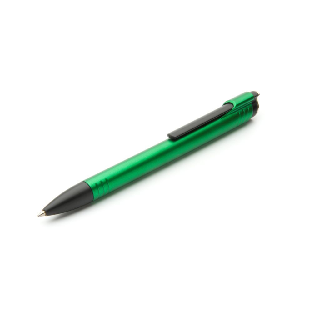 Bolígrafo plástico retráctil con cuerpo sólido.