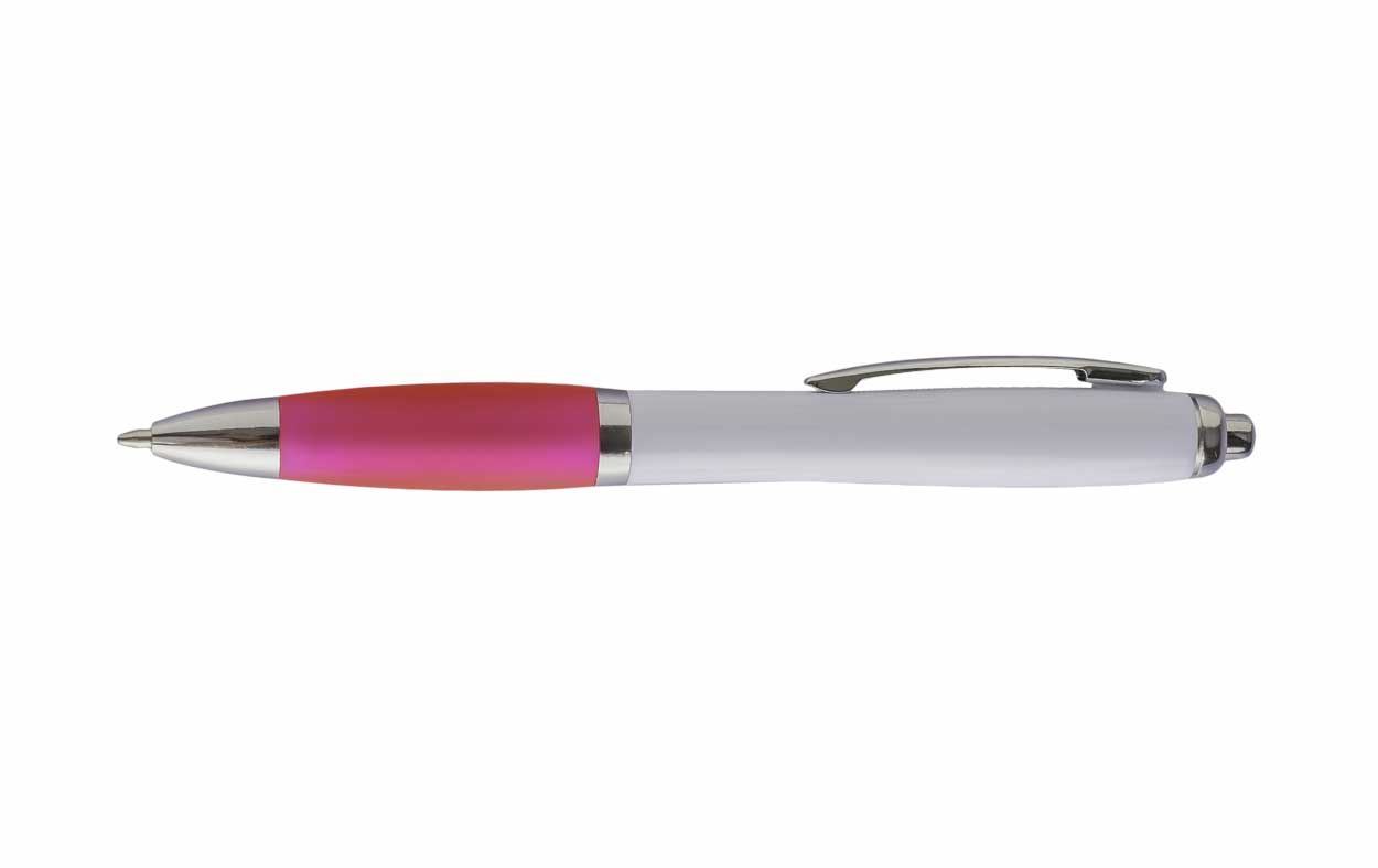 Clip de metal y grip con color traslúcido*. Tinta azul, punta redonda, grosor 1.0MM.