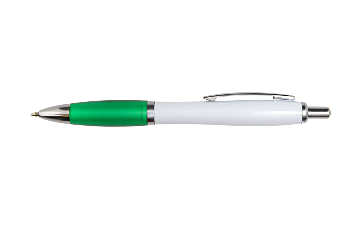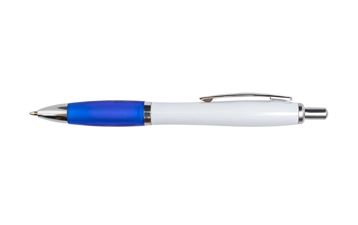 Clip de metal y grip con color traslúcido*. Tinta negra, punta redonda, grosor 1.0MM.