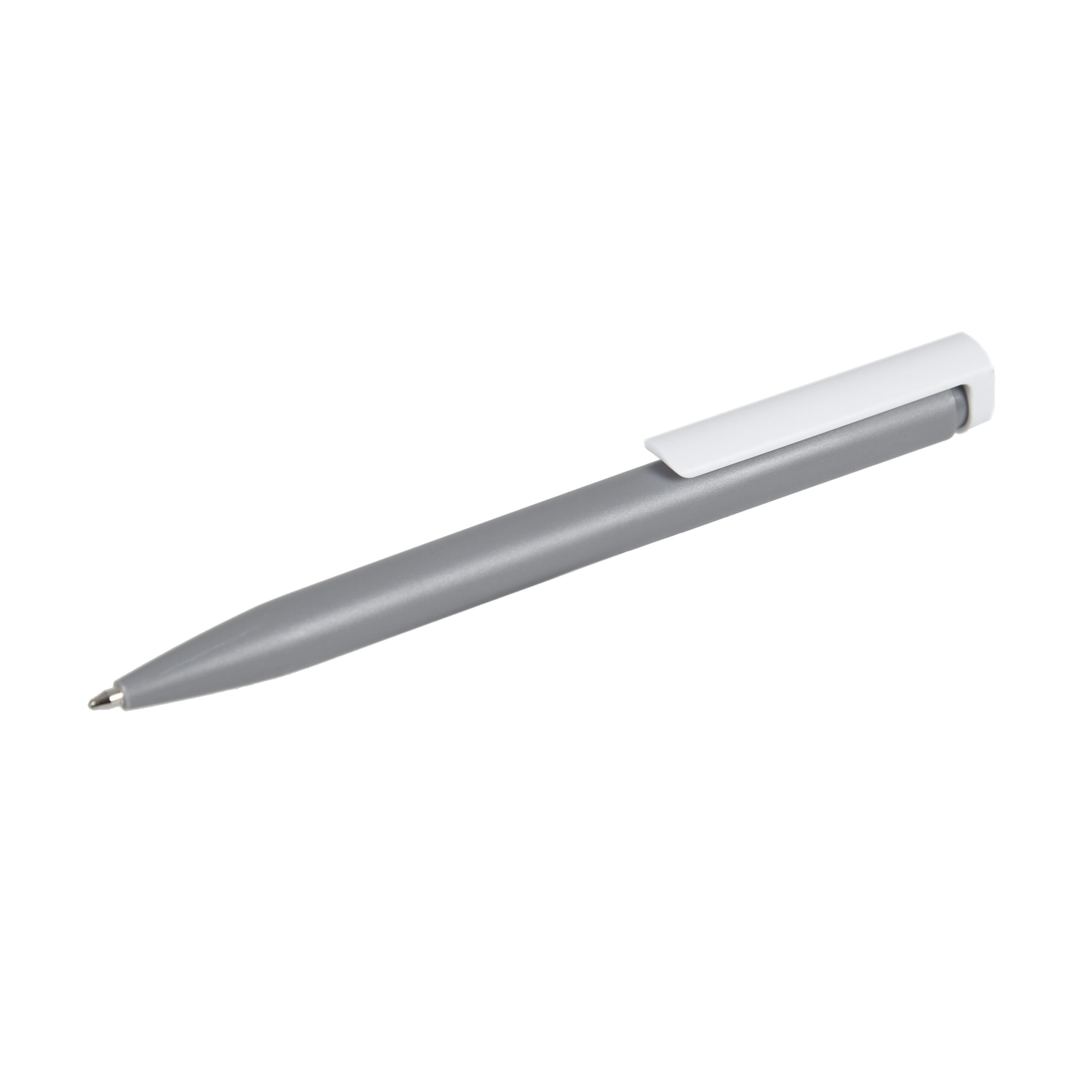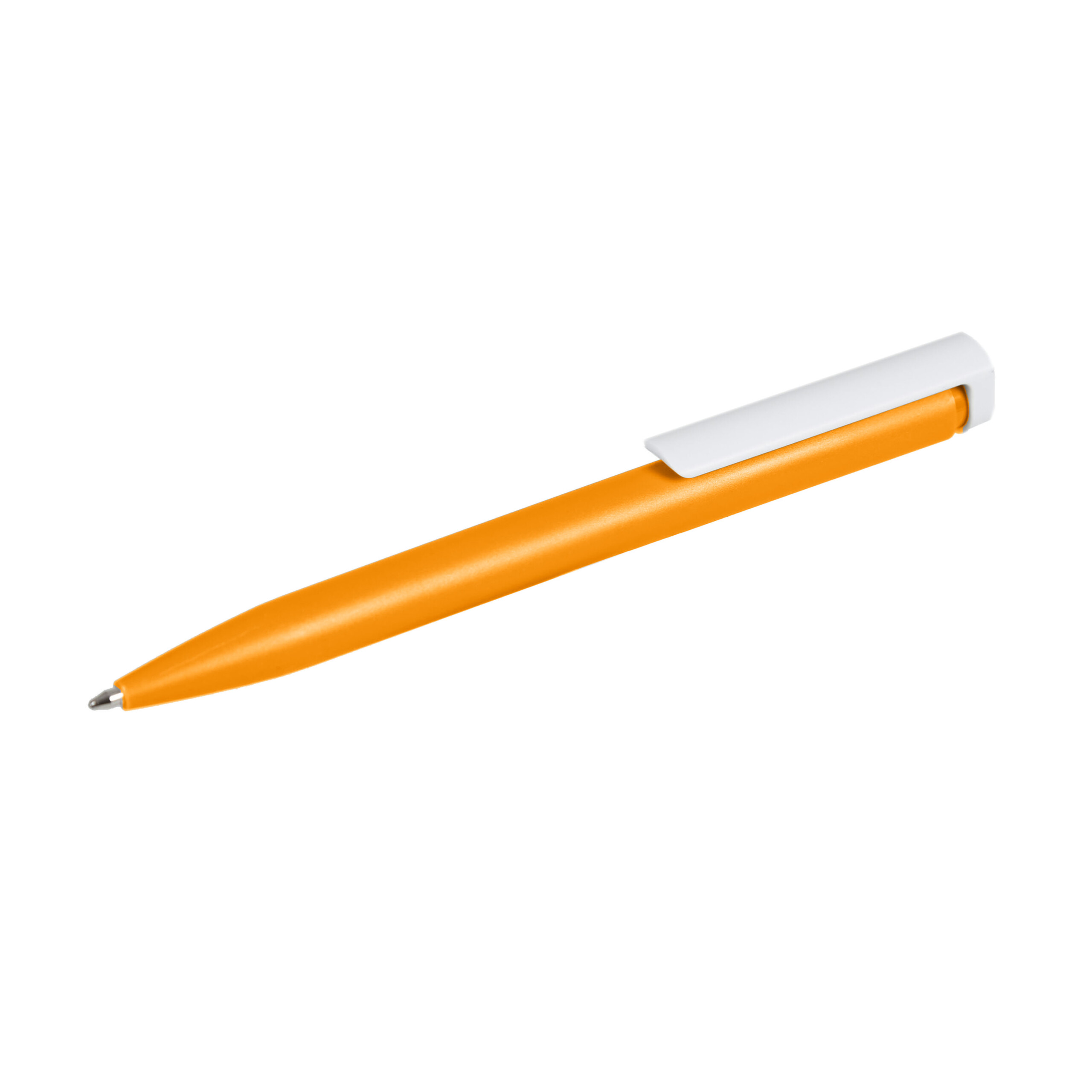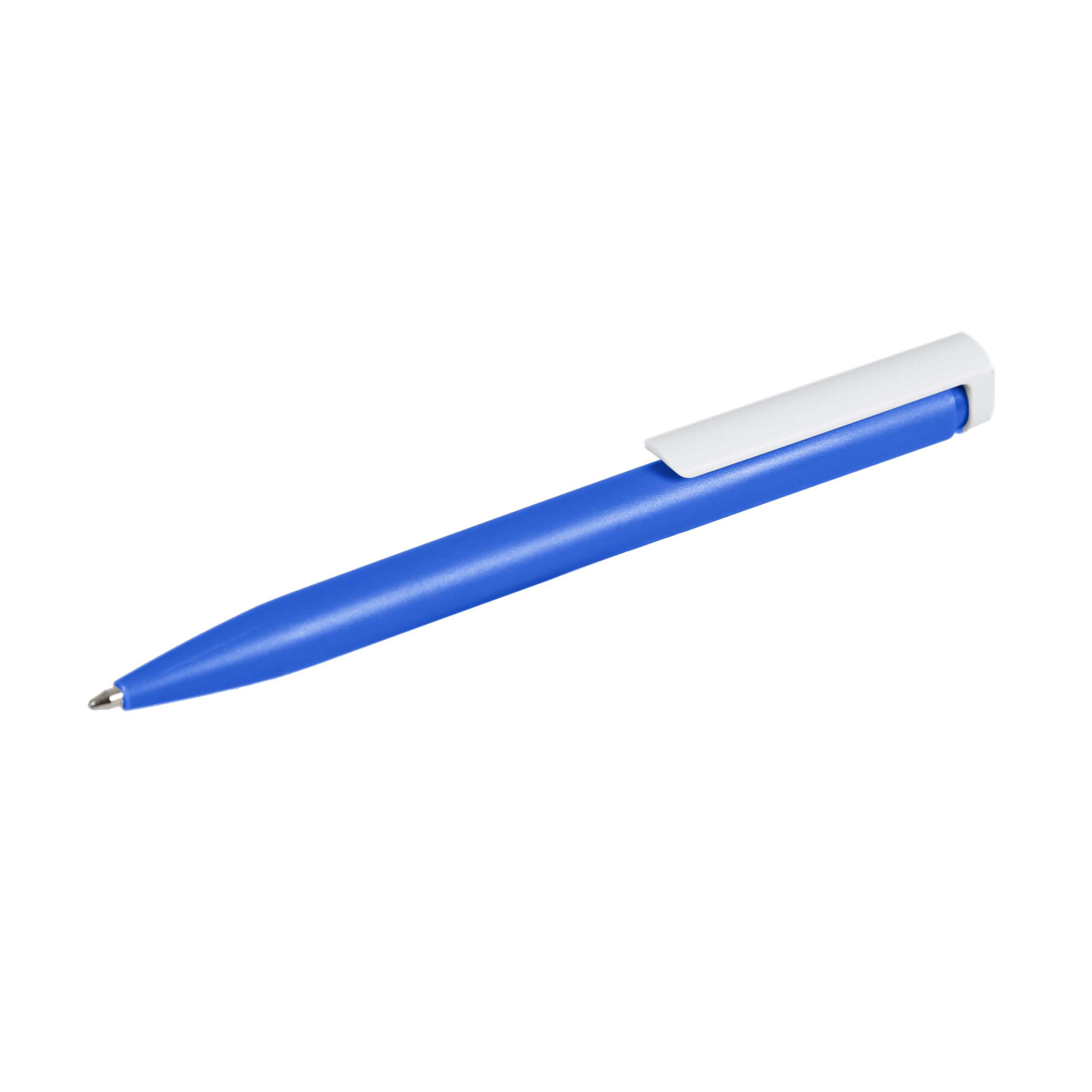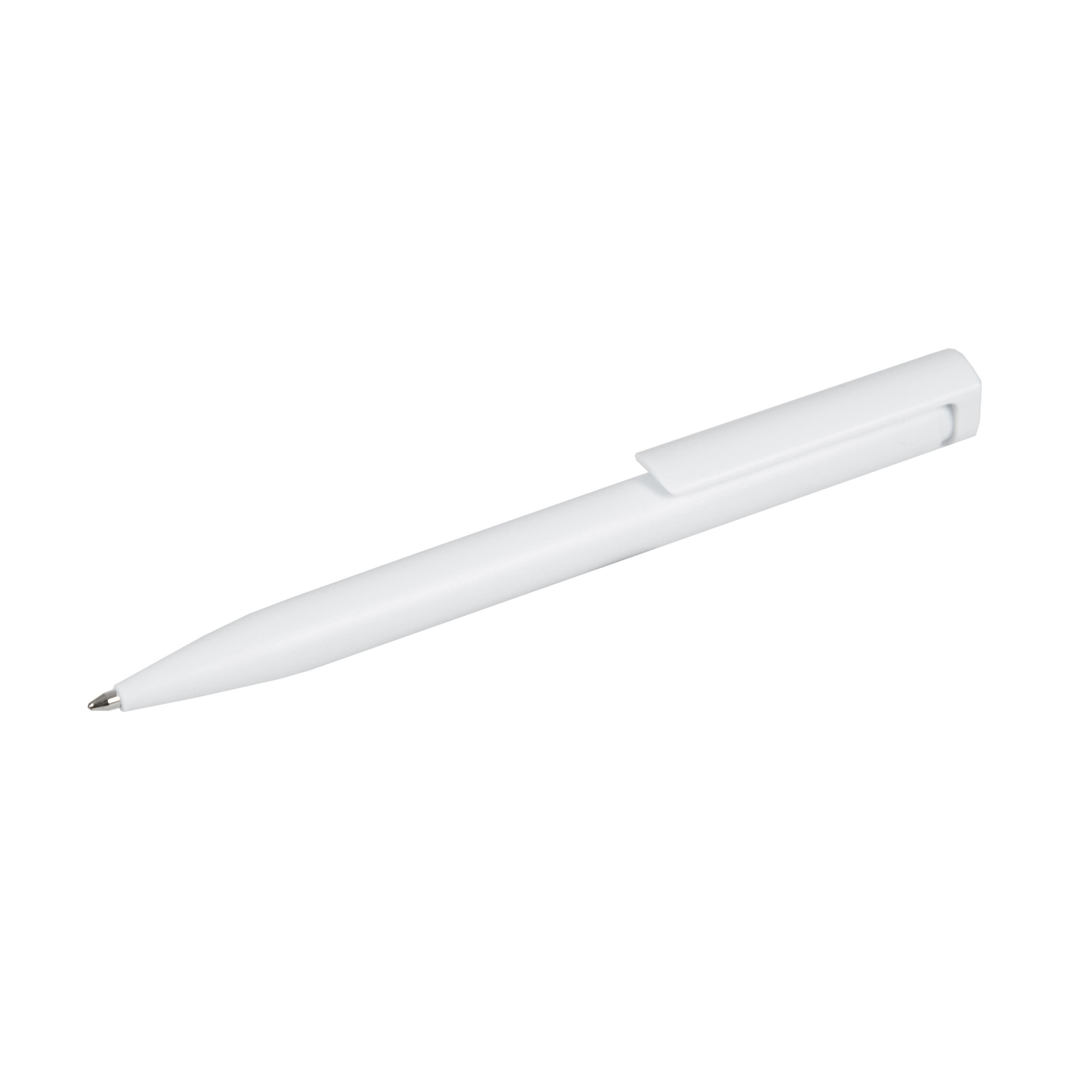 Bolígrafo plástico de cuerpo de color sólido y clip en color blanco. Apertura con pulsador. Tinta Negra 1000 m de longitud de escritura. Zecat