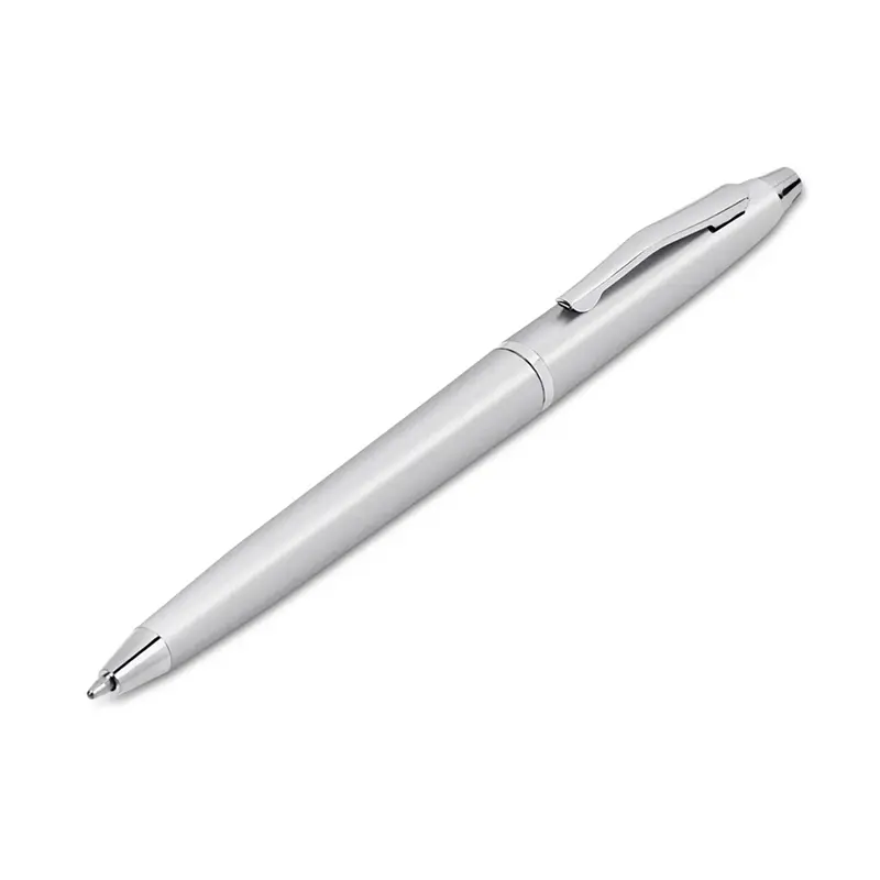 Bolígrafo de acción giratoria fabricado en plástico ABS con clip metálico y anillo medio. Cuenta con un diseño elegante y funcional que incluye mecanismo retráctil. Es ideal para oficinas, reuniones, uso escolar o como artículo promocional corporativo.
