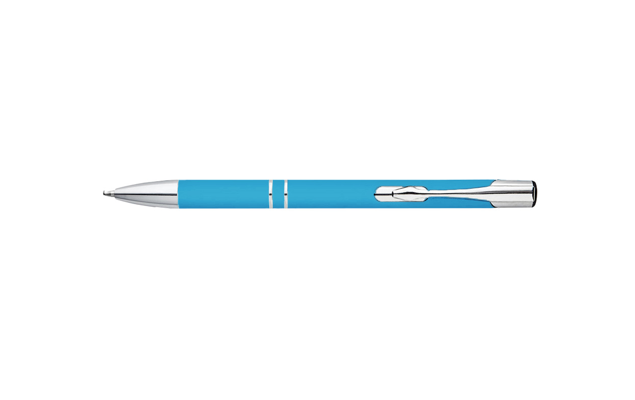 Bolígrafo retráctil con clip metálico. Material de aluminio con acabado en goma (rubber). Tinta de color negro. Medidas: ø 1 x 13,7 cm