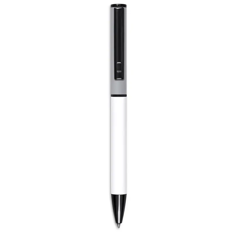 Bolígrafo metálico con mecanismo de giro fabricado en aluminio con recubrimiento de goma para una mejor sujeción. Cuenta con tinta azul alemana y clip metálico. Es ideal para el ámbito corporativo, eventos ejecutivos y uso profesional, aportando elegancia y precisión en cada trazo.