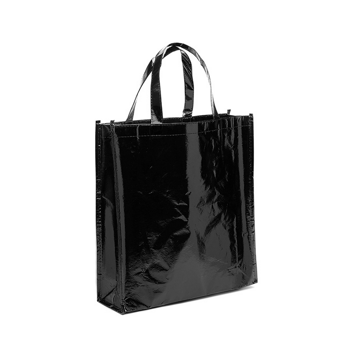 Realizada en Nonwoven Laminated Metallic. Manijas reforzadas. Medidas: 36 x 40 x 10 cm. Capacidad: 14.5 Lt. Tahg.
