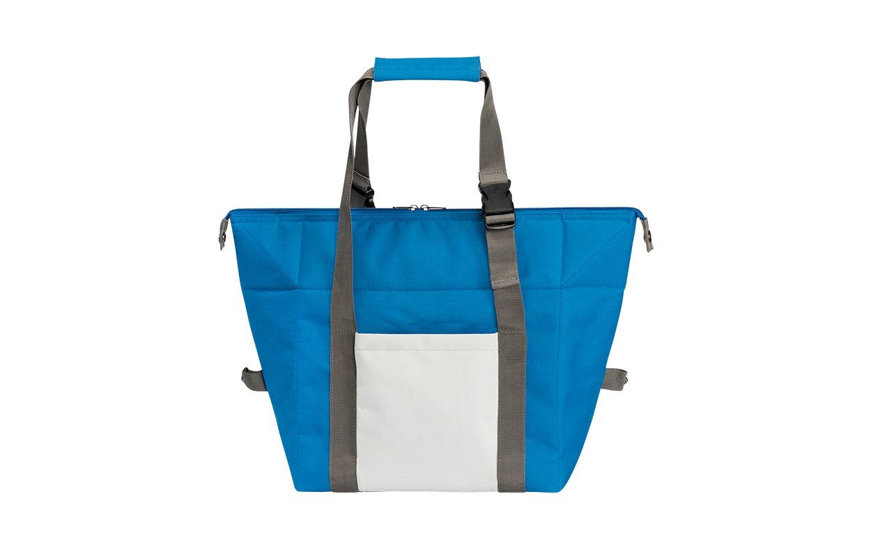 Bolsa térmica con 2 formas de uso, fabricada en poliéster 600D. Dispone de un compartimiento principal con doble cierre e interior acolchado y forrado con PEVA. Incluye un bolsillo frontal con cierre, tiras ajustables, con refuerzo para el hombro.  Capacidad: 21L
