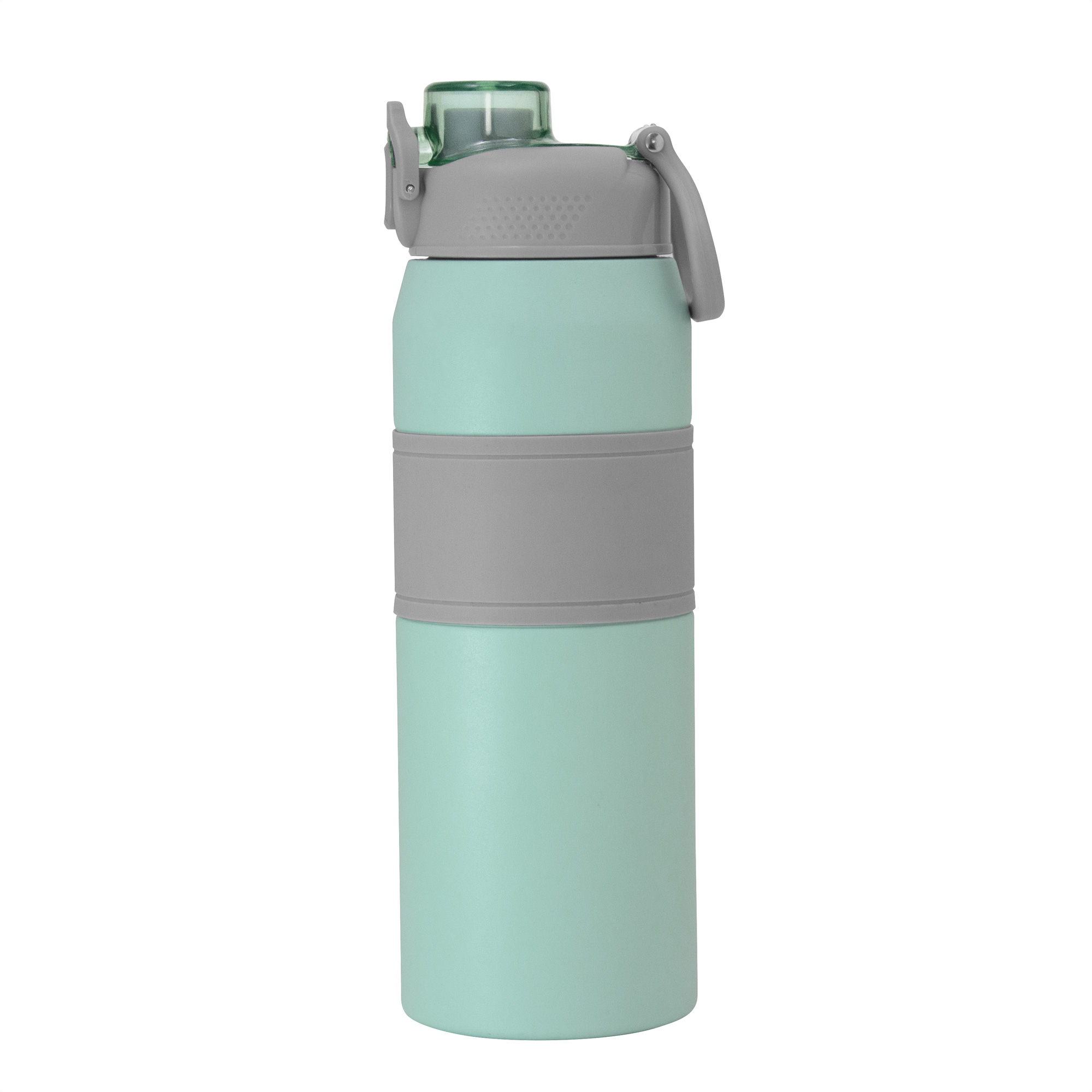 Hidratación a otro nivel.Botella deportiva con doble pared, sellada al vacío. Interior de acero 304 y exterior de acero 201. Pintura powder coat (pintura más duradera y resistente a la corrosión y el paso del tiempo). Tapa plástica a rosca en color gris con anillo de silicona y manija plástica para su agarre, combinada con tapa rebatible en colores translucidos a juego con el color de la botella. Boquilla con sorbete incluido. Grip de silicona color gris para mejor agarre. Mantiene alrededor de 8 hs la temperatura de las bebidas calientes y frías. Medidas: Ø 8 cm x 25 cm.