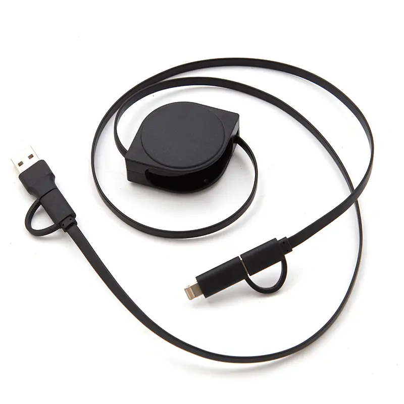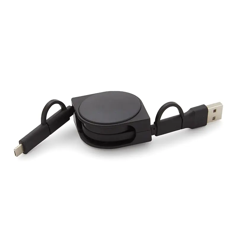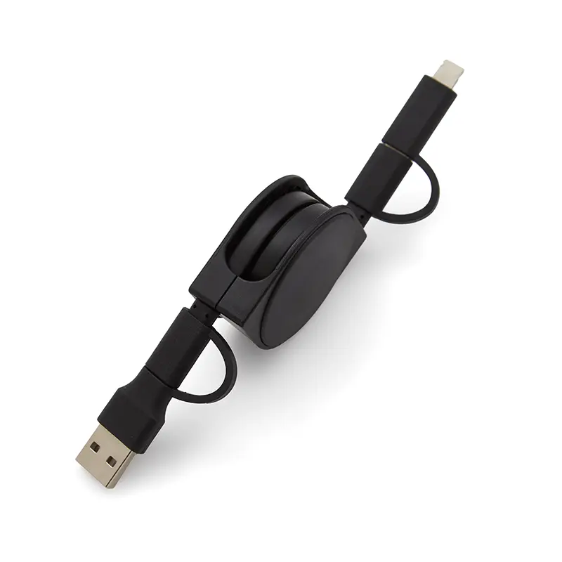 Cable 4 en 1 extensible, color negro con una longitud de 100cm. Es el accesorio perfecto para mantener tus dispositivos siempre cargados y listos para usar. Interfaz de entrada USB A / USB C. Interfaz de salida USB C / MICRO / LIGHTNING, lo que te permite cargar dispositivos con diferentes tipos de entradas. Cuenta con cargador para Apple Watch. Tahg