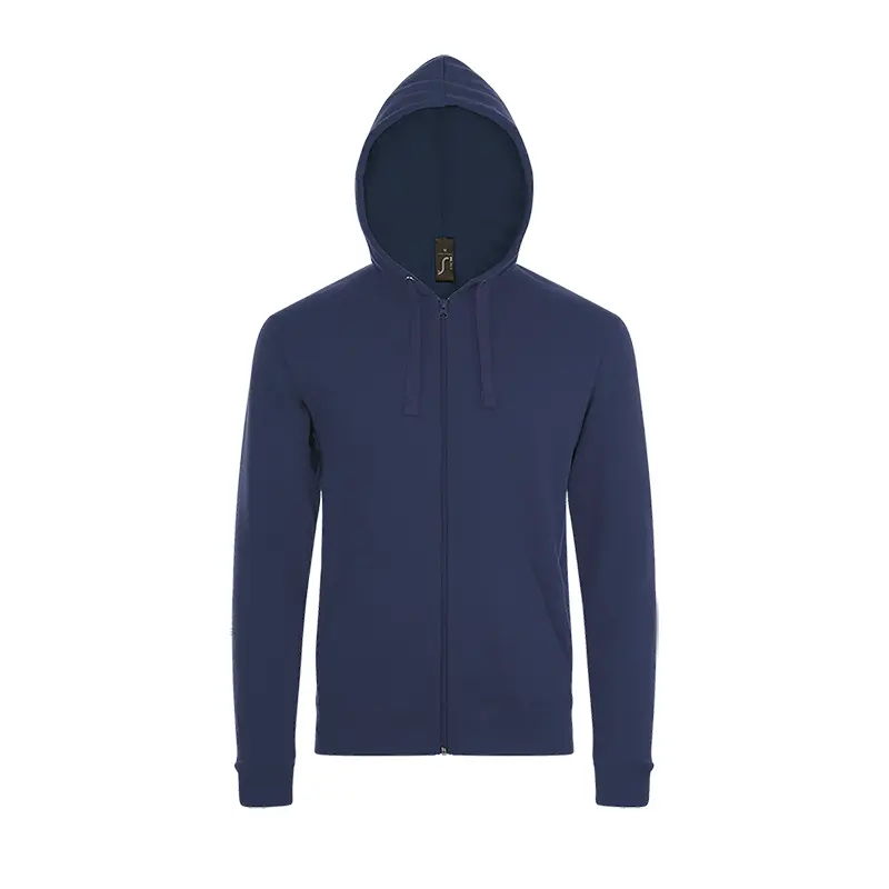 Campera de frisa 50% algodón y 50% poliéster de 260g con cierre y capucha unisex. CERTIFICACIÓN: PETA-Approved Vegan