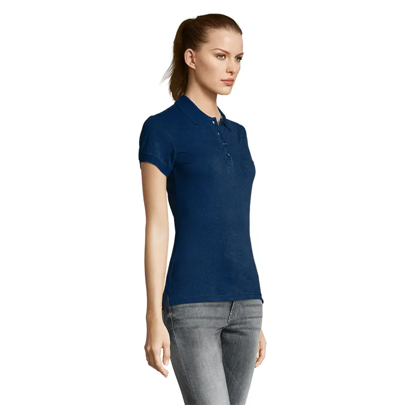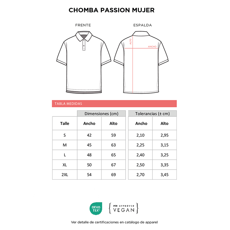 Chomba de pique con cuello de manga corta de 170g, 100% algodón peinado. Corte ajustado, cuello con tapa costura, aberturas laterales, cartera con 4 botones a tono y uno de repuesto