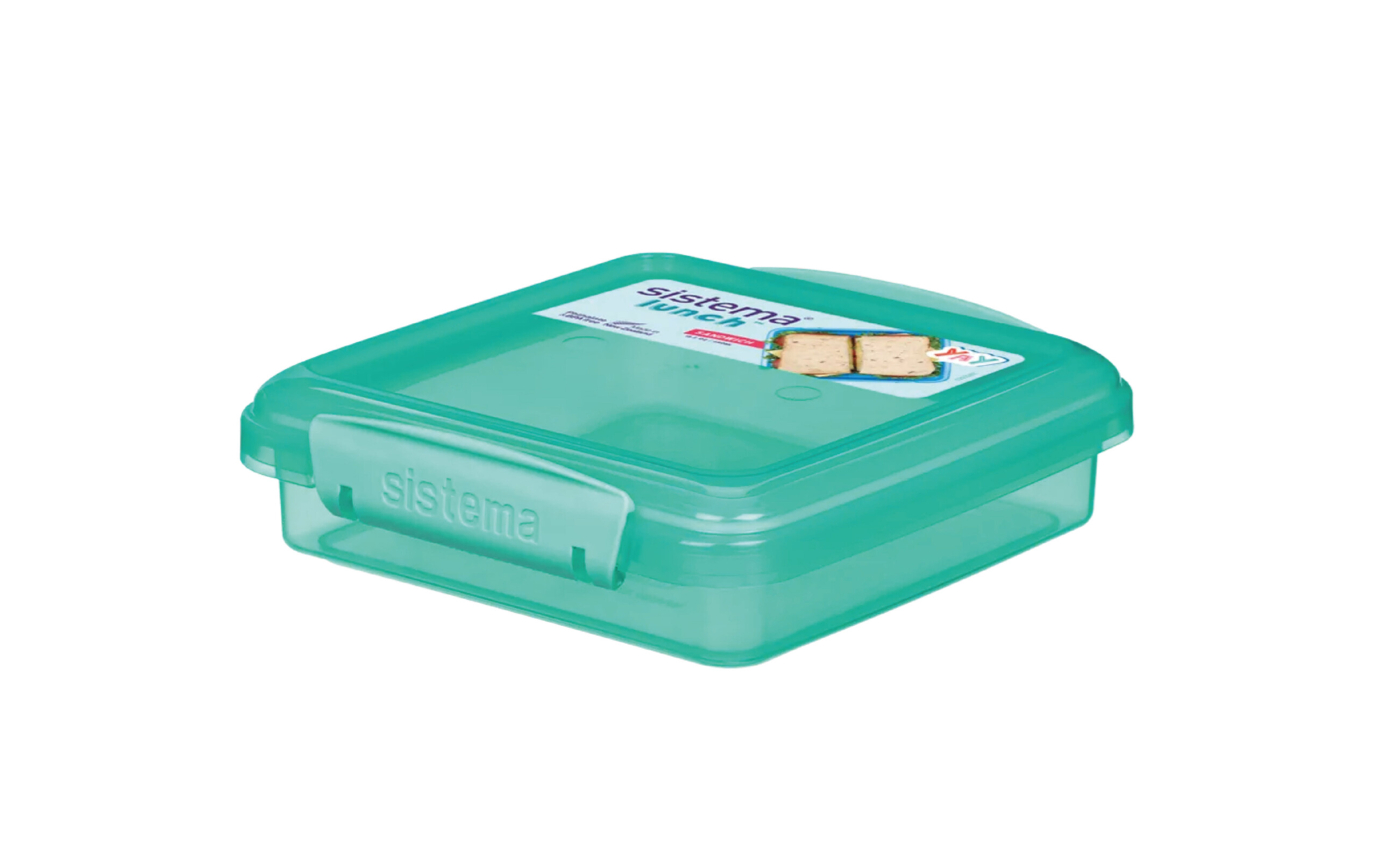 Contenedor Sistema Lunch Sandwich color Celeste de 450ml, su tamaño rectangular es ideal para llevar de almuerzo sandwichs – Contenedor desarrollado especialmente por Sistema – Sistema Klip It, dos clips en los laterales hacen que el bloqueo sea fácil y seguro – El sello interno flexible y los clips de bloqueo hacen que los alimentos permanezcan frescos por más tiempo – Sistema compacto de almacenamiento apilable ahorran espacio de almacenamiento – Apto para freezer, lavavajillas (estante superior) y microondas (sin tapa) – Capacidad 450ml – BPA y Ftalato free – Hecho en Nueva Zelanda 2108837