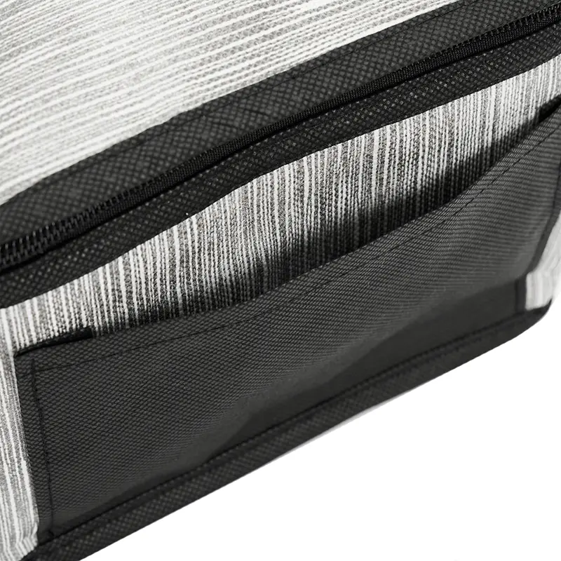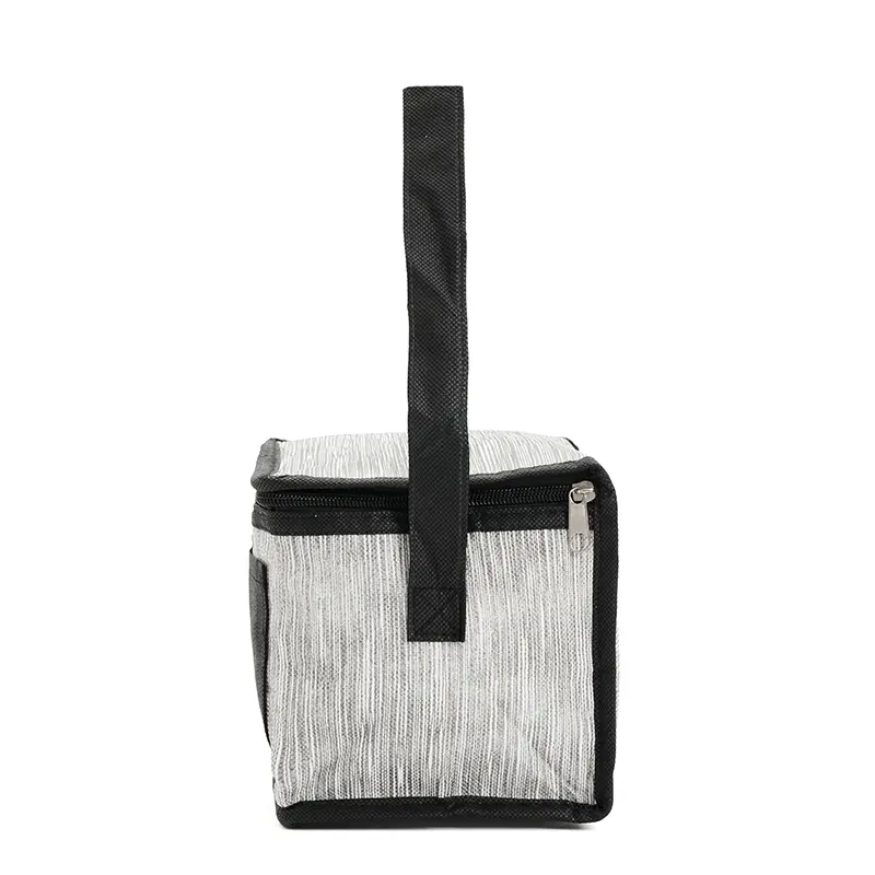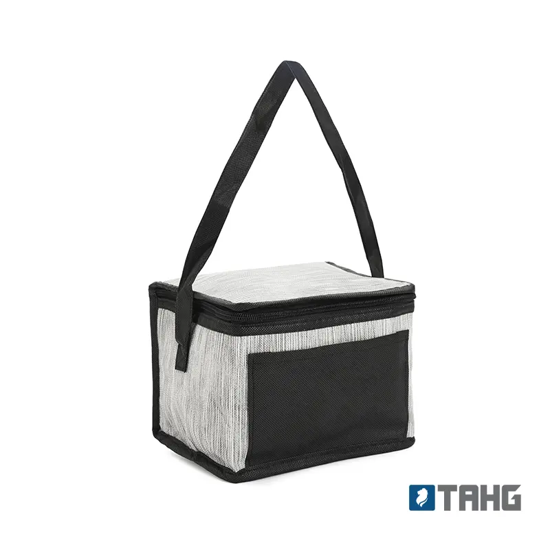 Cooler rectangular compacto con cierre y manijas laterales. Está confeccionado en polipropileno no tejido, con interior forrado en aluminio. Cuenta con compartimiento principal con cierre y asas a los lados para transporte. Es ideal para conservar alimentos y bebidas en salidas.