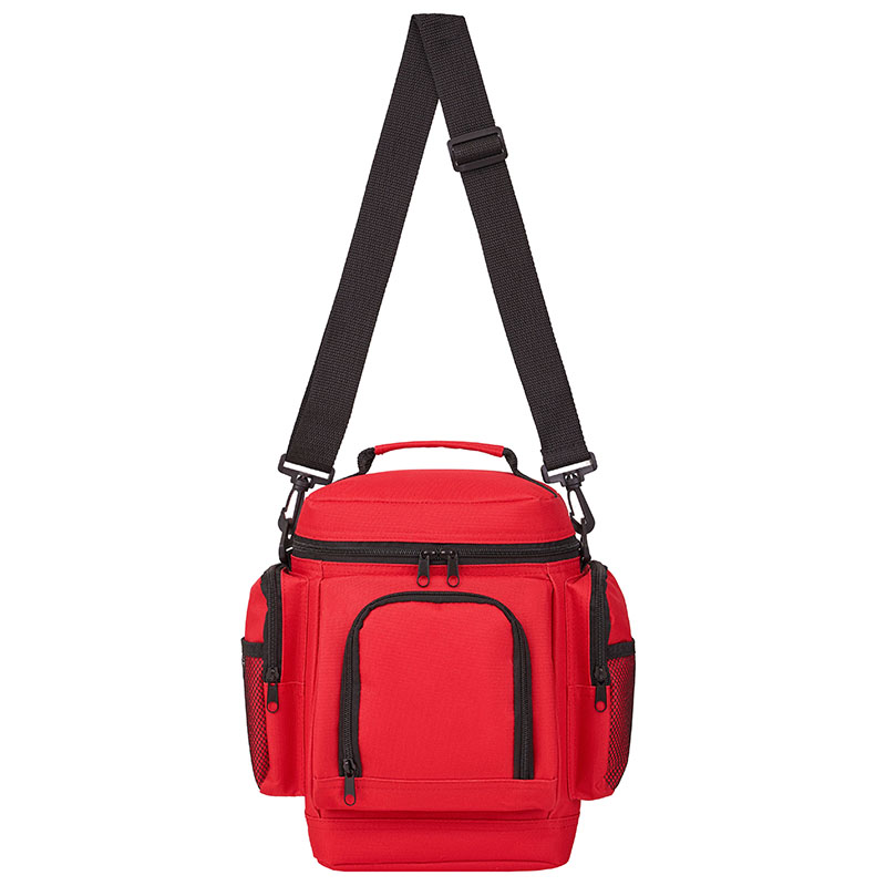 Cooler tipo morral, confeccionado en tela Nylon 600D. Tiene interior térmico forrado en aluminio.
