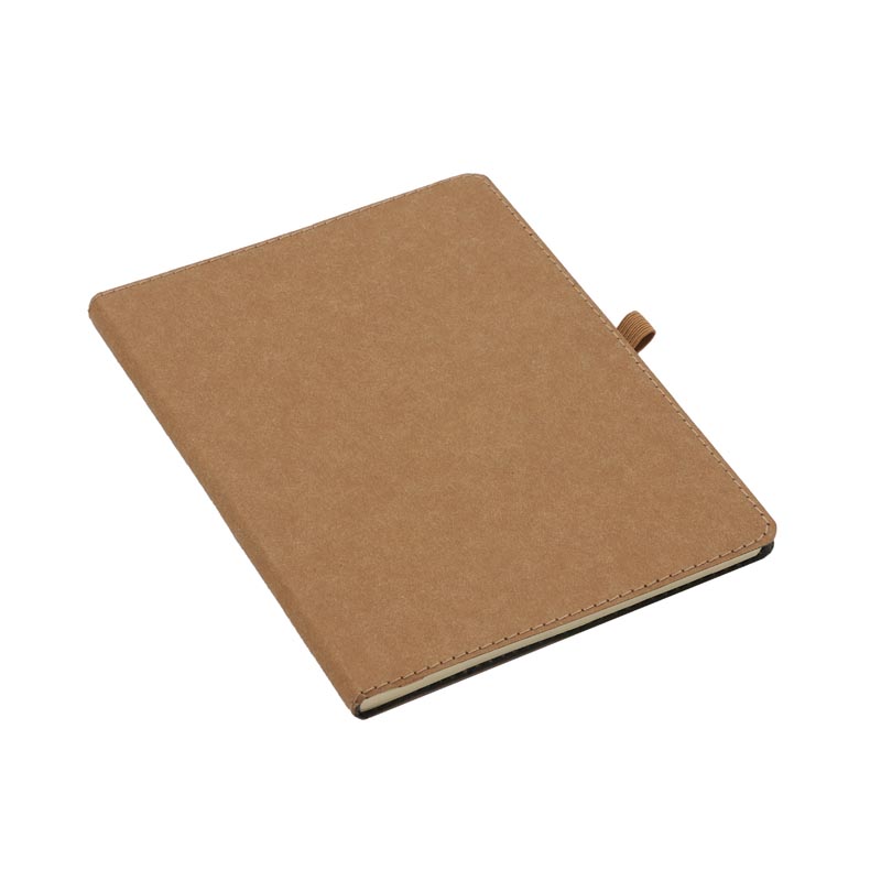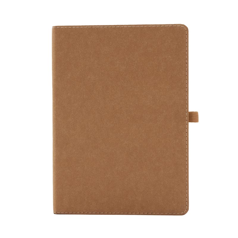 Cuaderno A5 de 64 hojas lisas de 70gr con tapa dura recubierta de papel kraft. Cuenta con marcador de páginas color beige y elástico porta lapicera. Encuadernación cosida. Medidas: 18 x 1 x 13 cm (Altura x Longitud x Ancho). ReUseMe