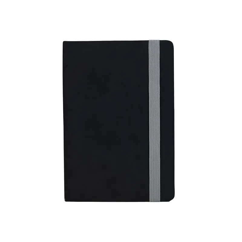 Cuaderno de tapa dura confeccionada en PVC, con 80 hojas rayadas A5 de 80gr. Cuenta con cierre elástico, cinta marcadora y canto de páginas en color.