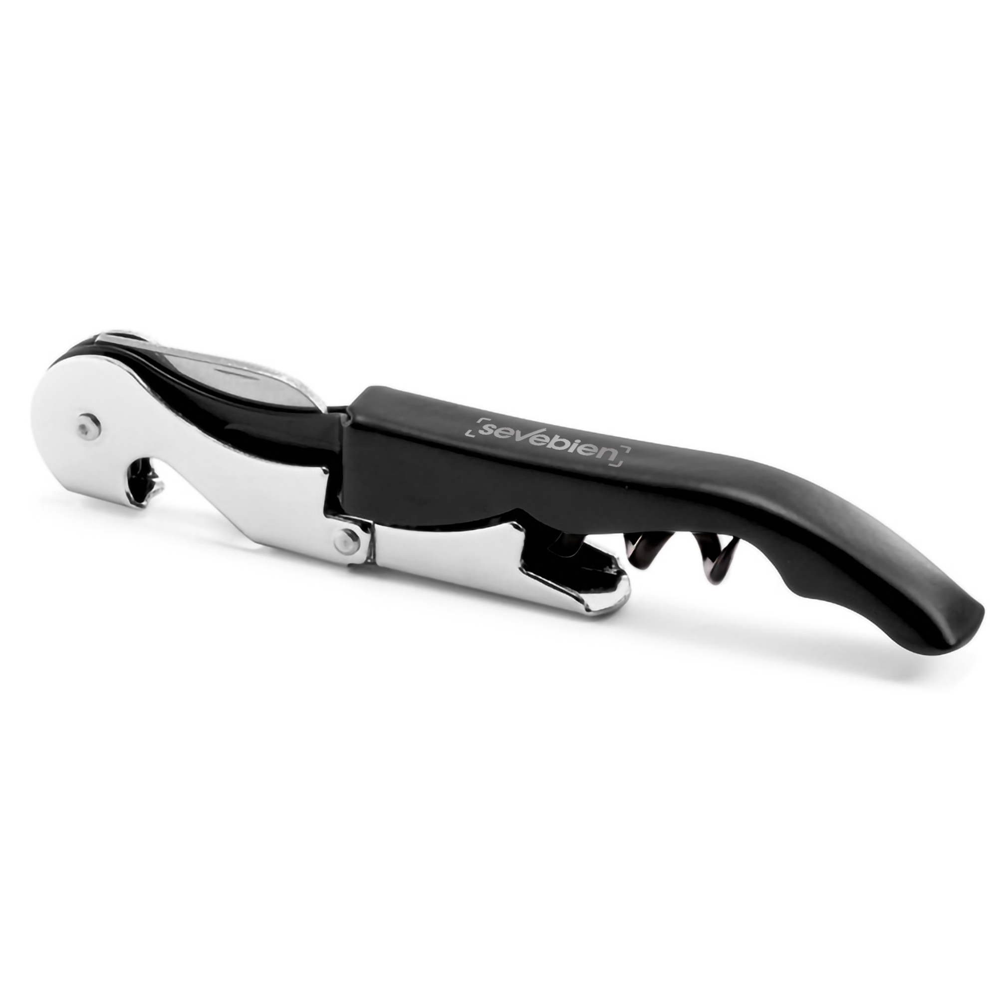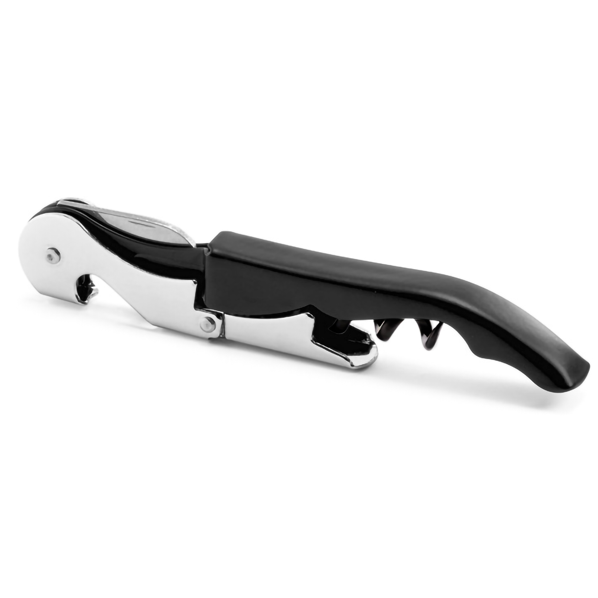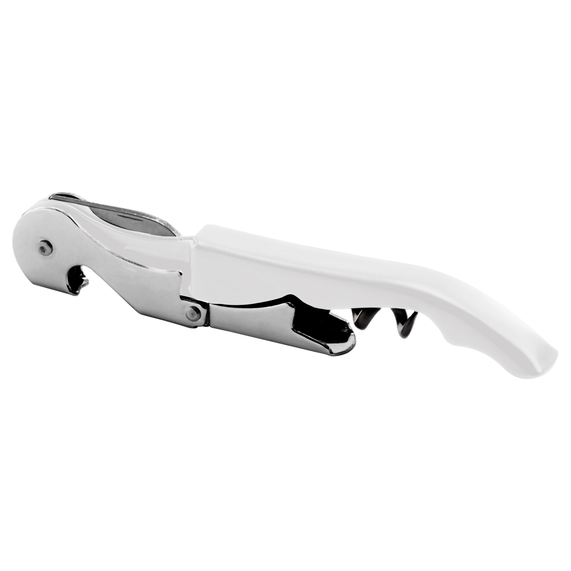12,1 x 2 x 1 cm. Acero inoxidable 420. Peso: 52g. Destapador dos tiempos de vinos, pintura mate y detalles en color plata. Sierra afilada para sacar la cubierta o capsula de la botella. Presentación en caja de regalo.