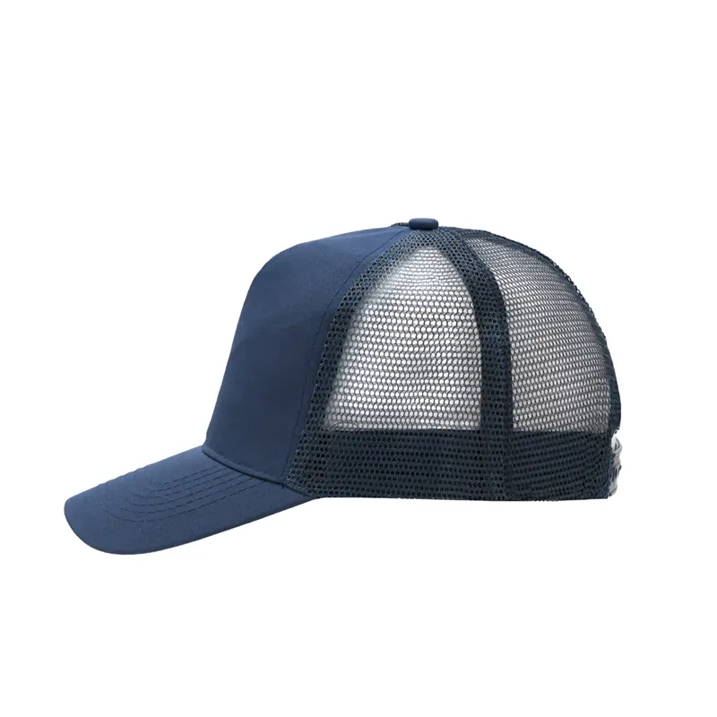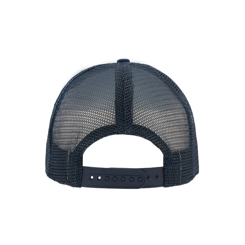 Gorro de 5 paneles en Polyester. Parte trasera con tela red. Diámetro 56 cm. Ajuste con broche plástico. Tahg.