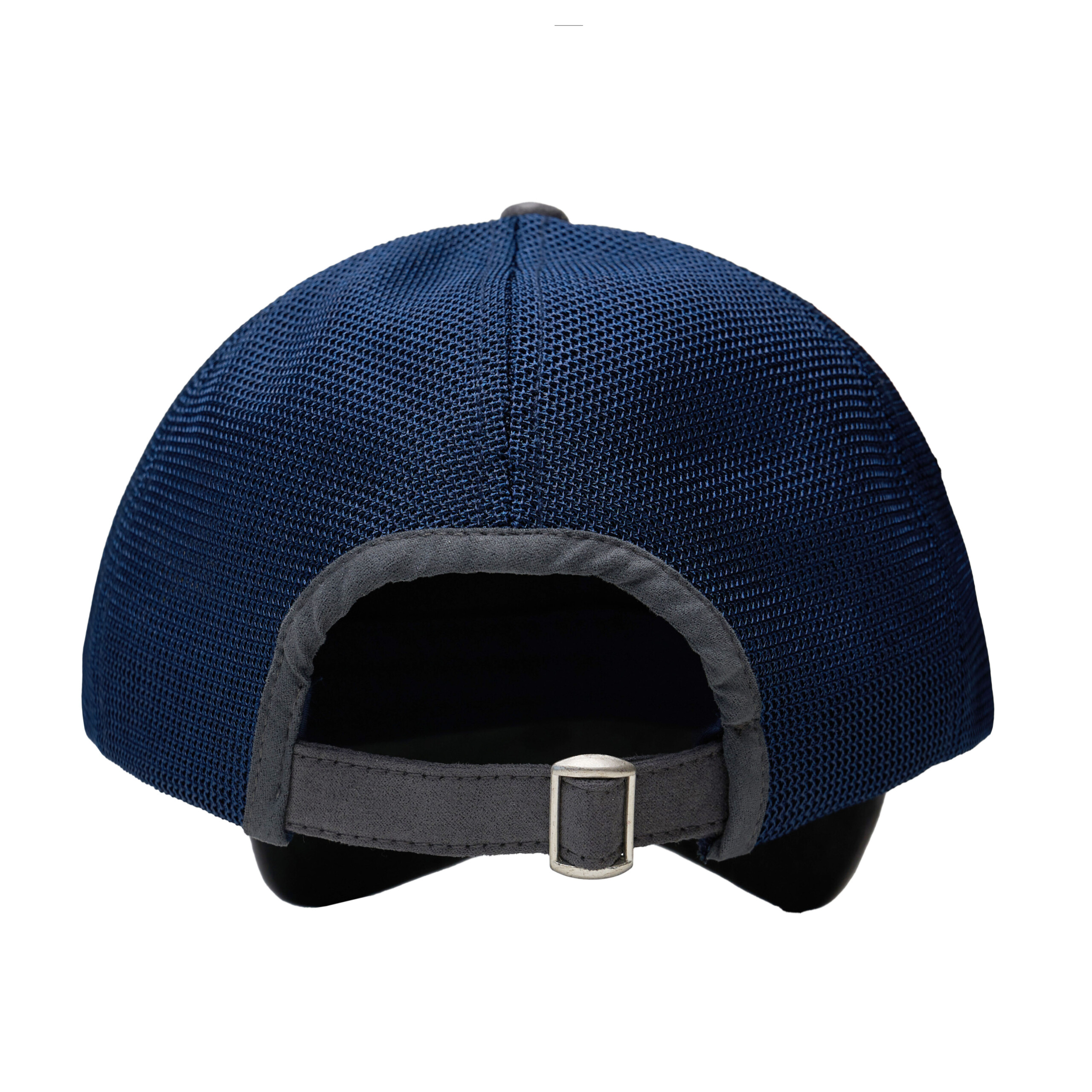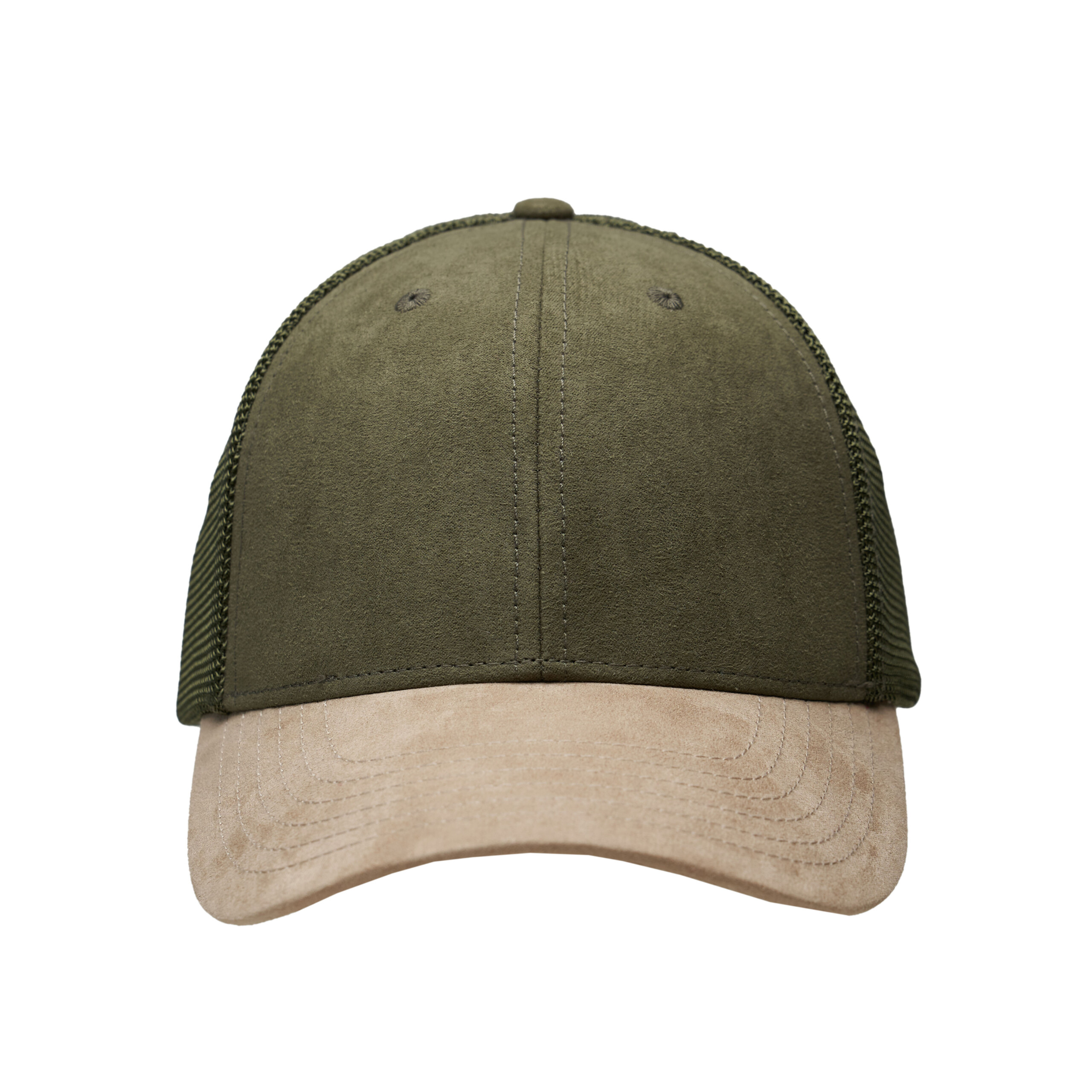Gorro de 6 paneles de algodón símil gamuza y mesh. Cierre hebilla metálica y tira de símil gamuza. Sticker metalizado en visera.