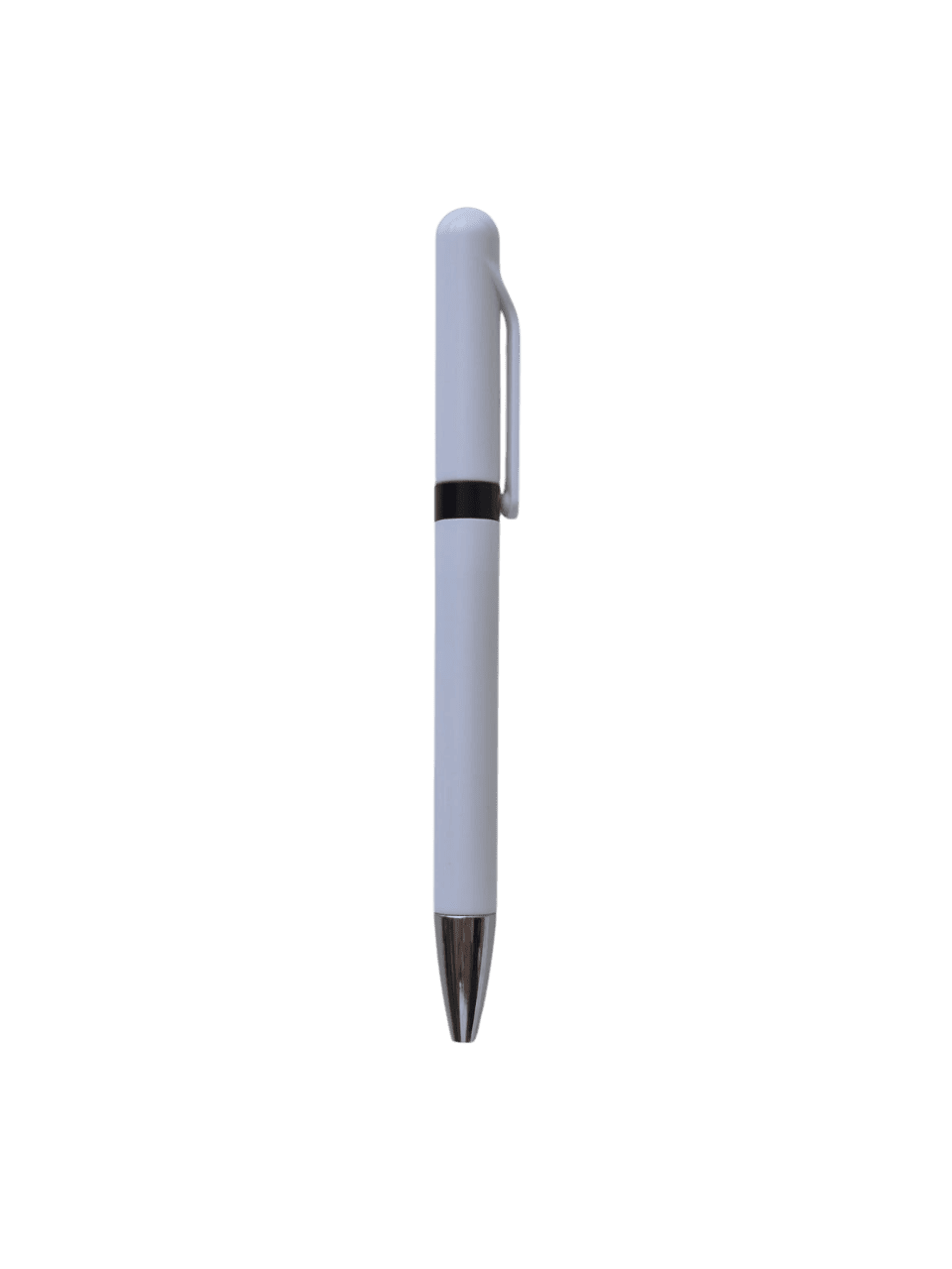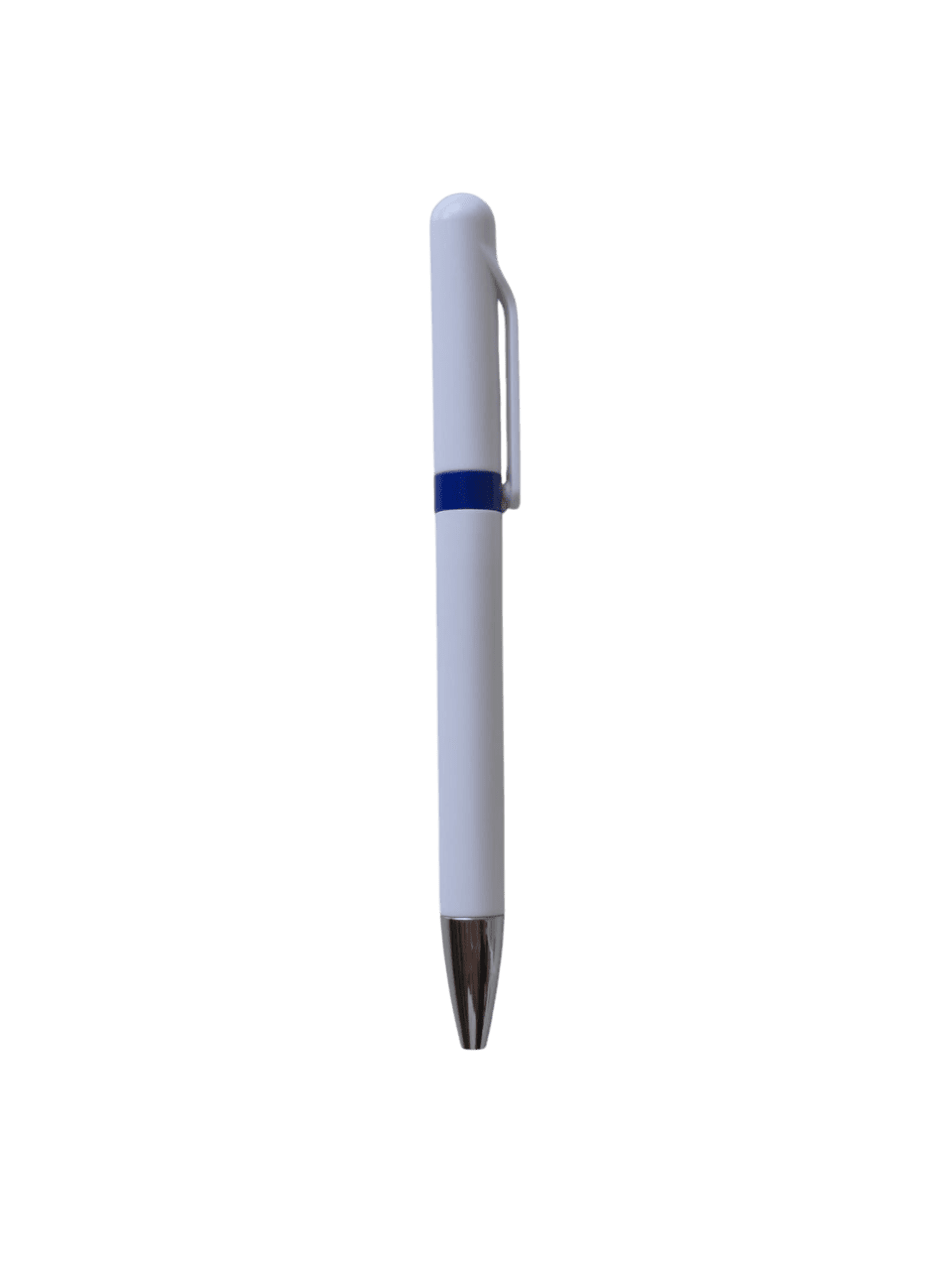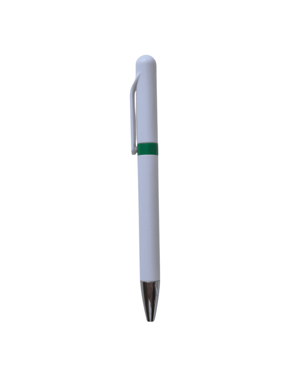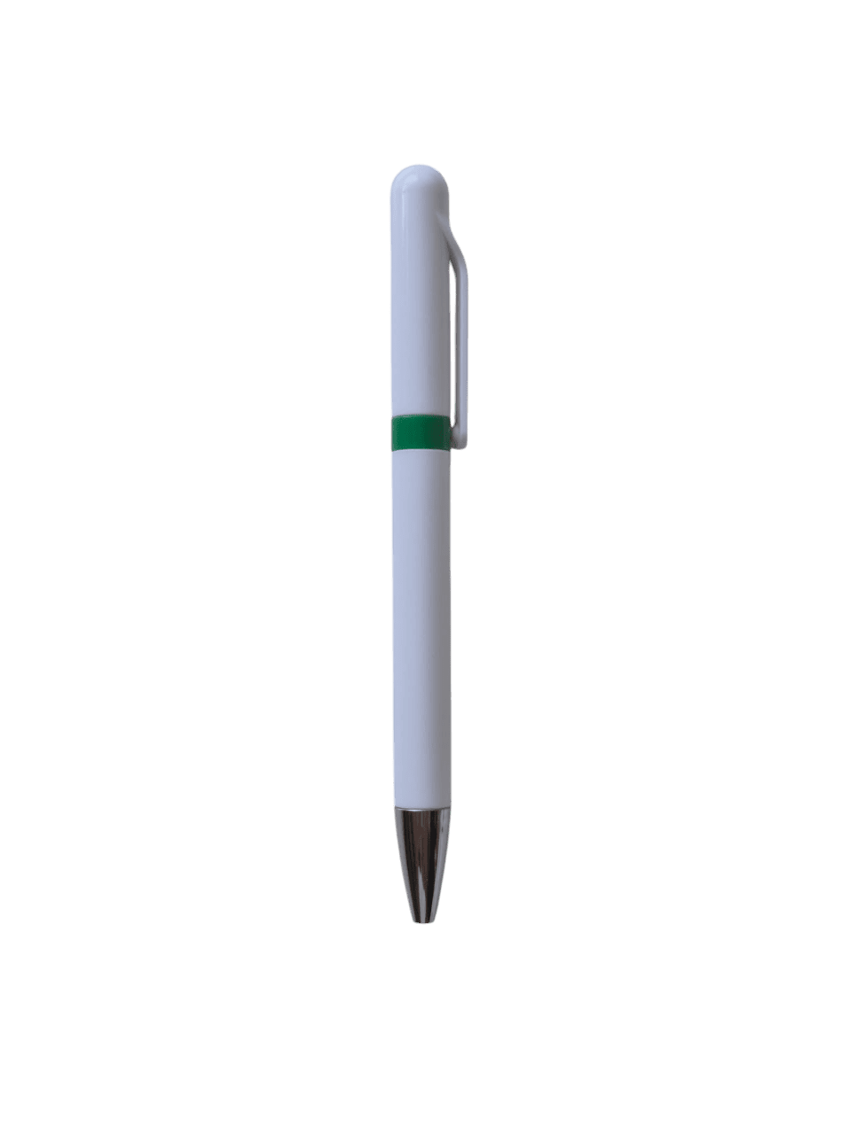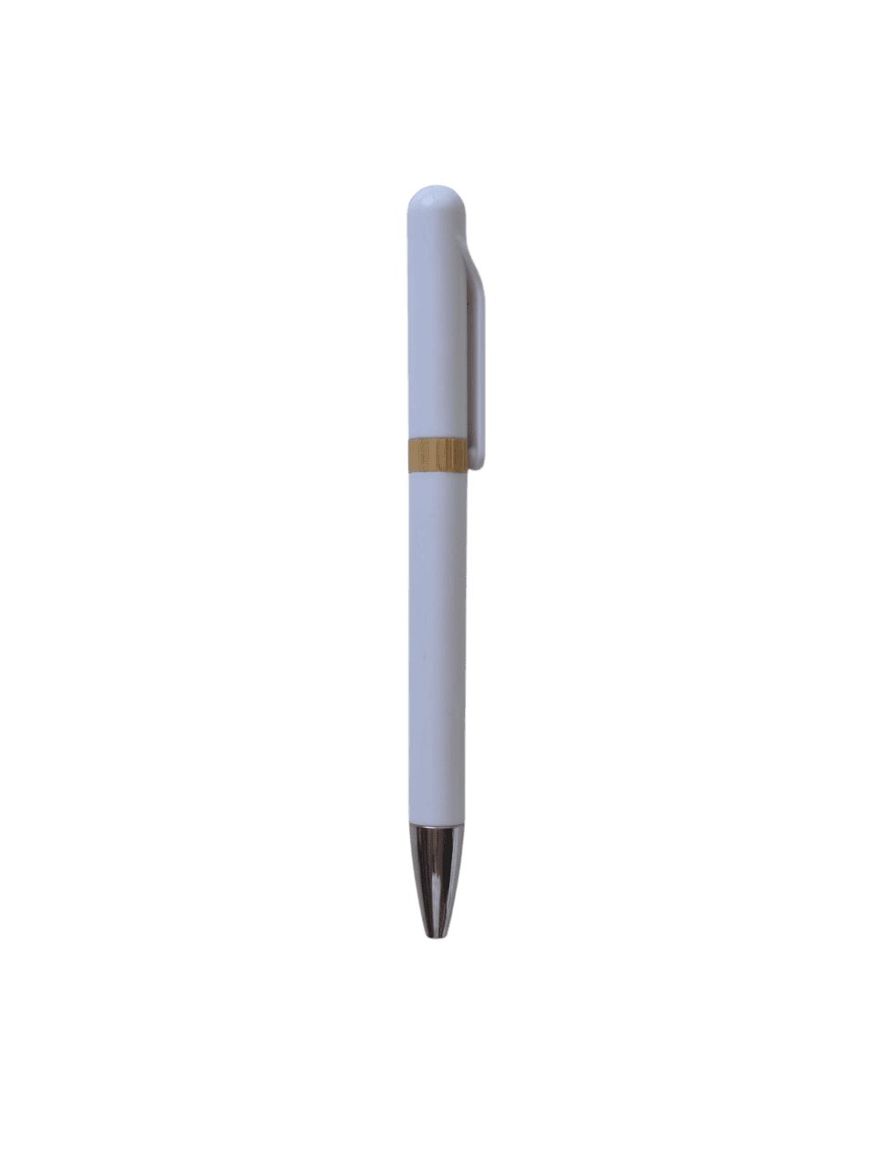 Bolígrafo medio giro. Cuerpo plástico, detalle en anillo en diferentes colores o bamboo. Puntera silver.