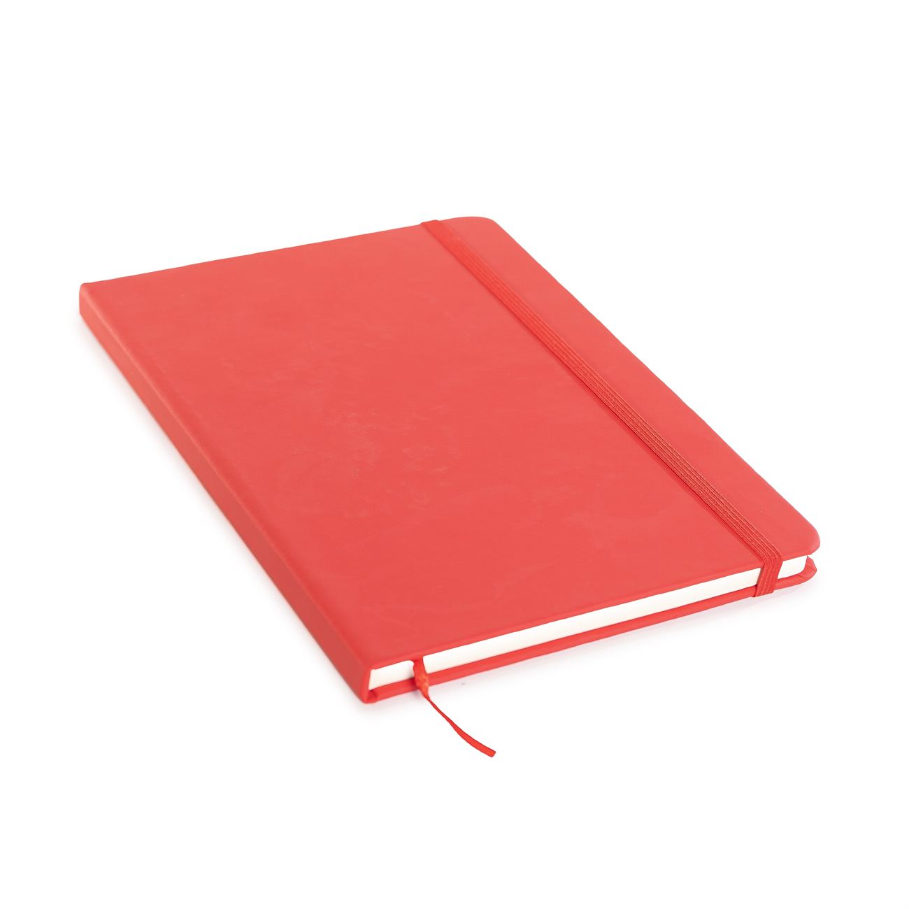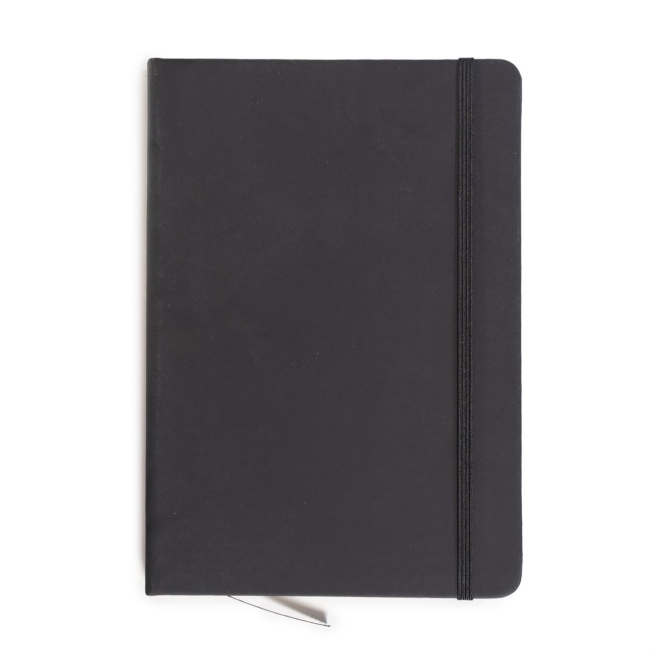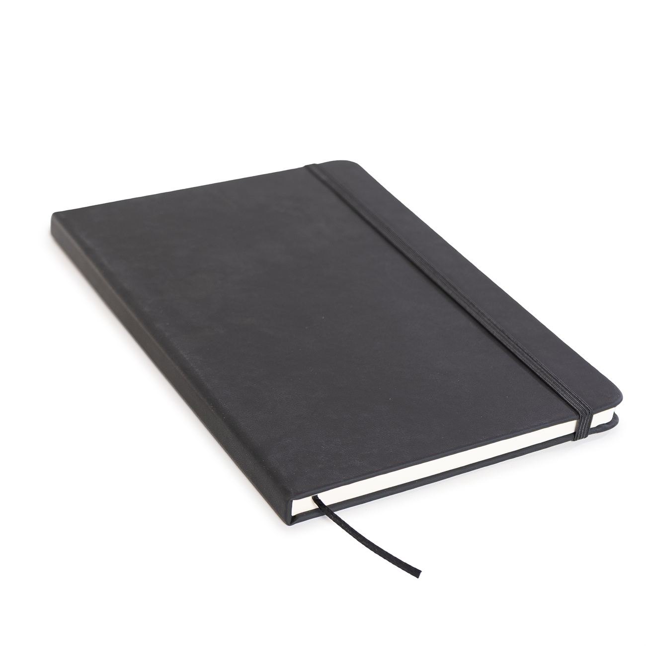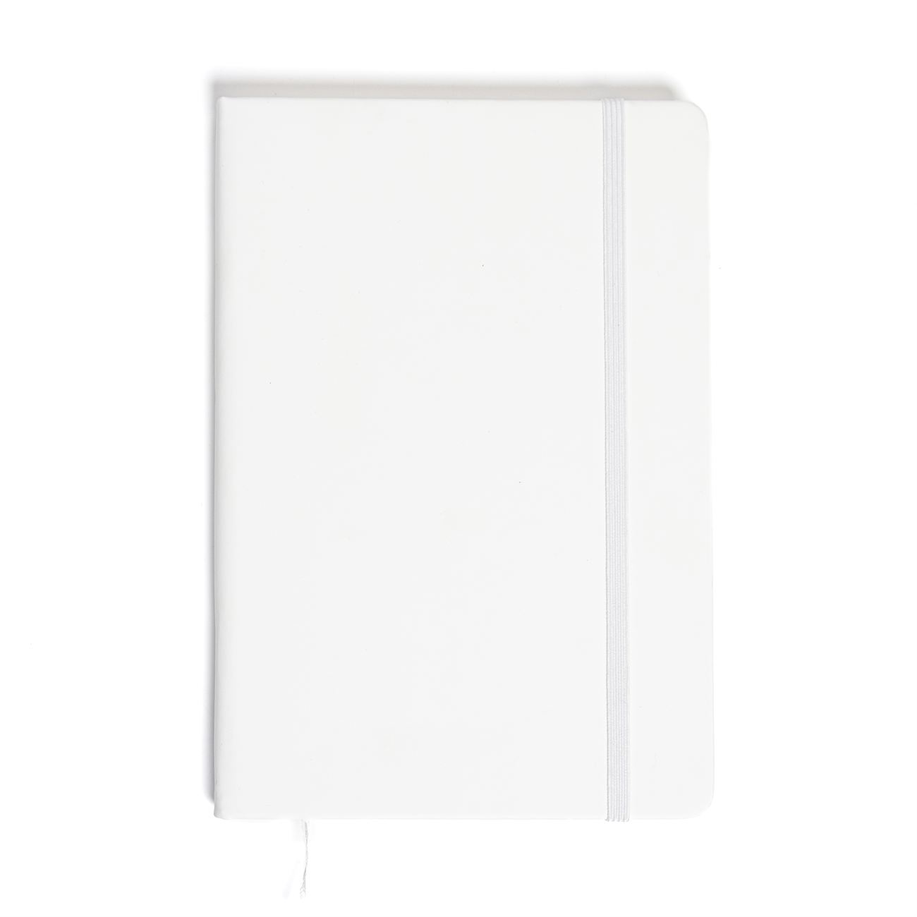 Cuaderno de tapas duras forrado en simil cuero A. Posee 80 hojas rayadas, banda elástica de sujección al tono y cinta señaladora.