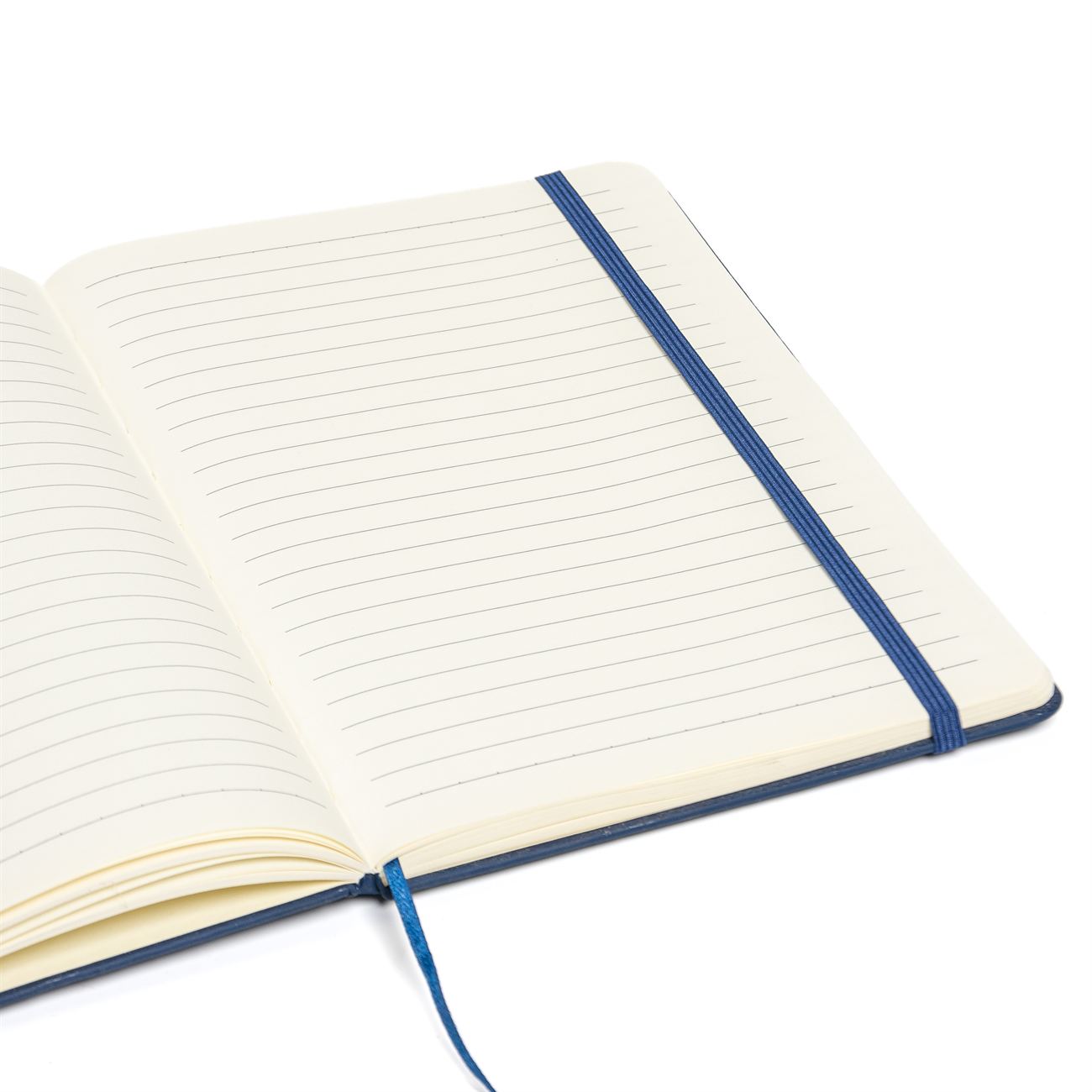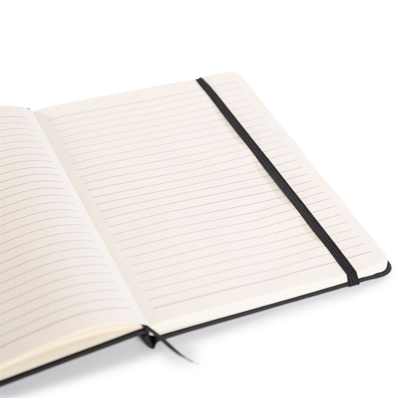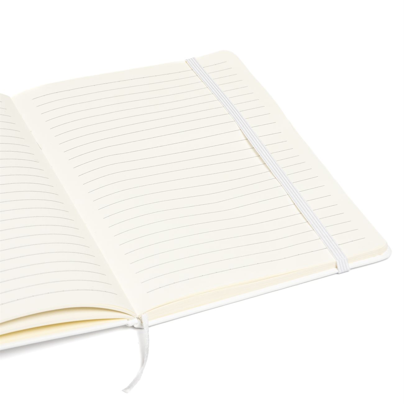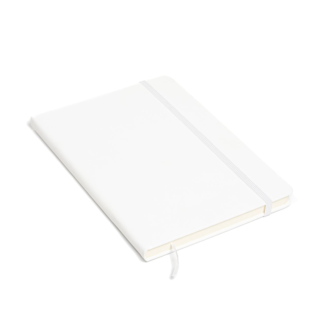 Cuaderno de tapas duras forrado en simil cuero A. Posee 80 hojas rayadas, banda elástica de sujección al tono y cinta señaladora.
