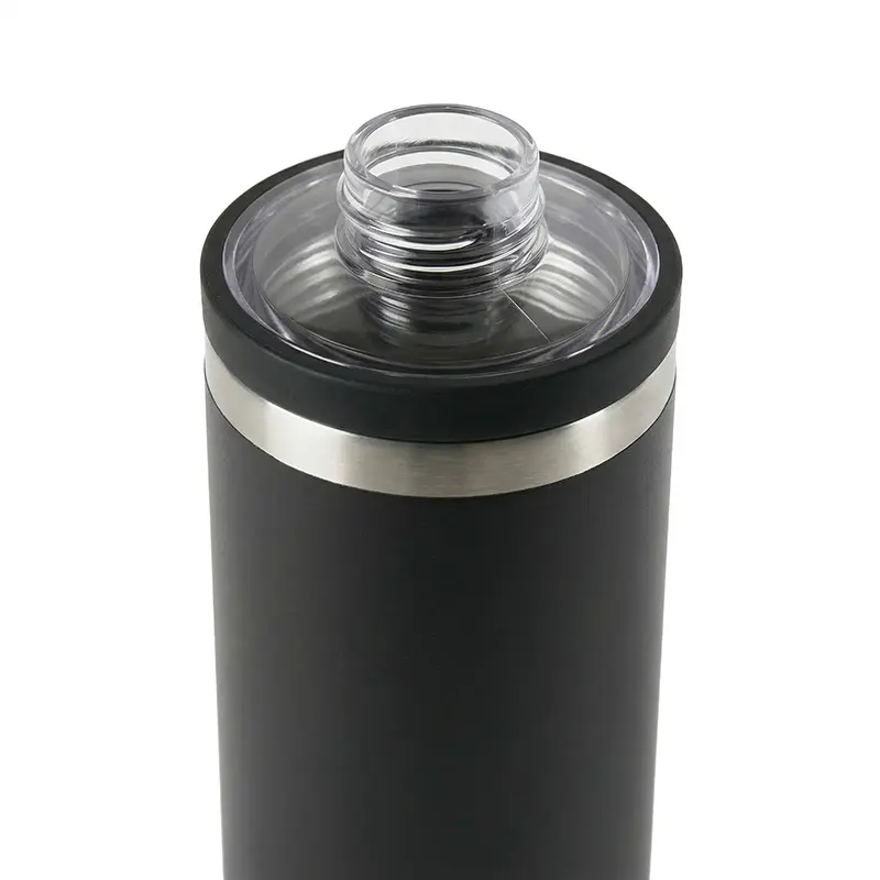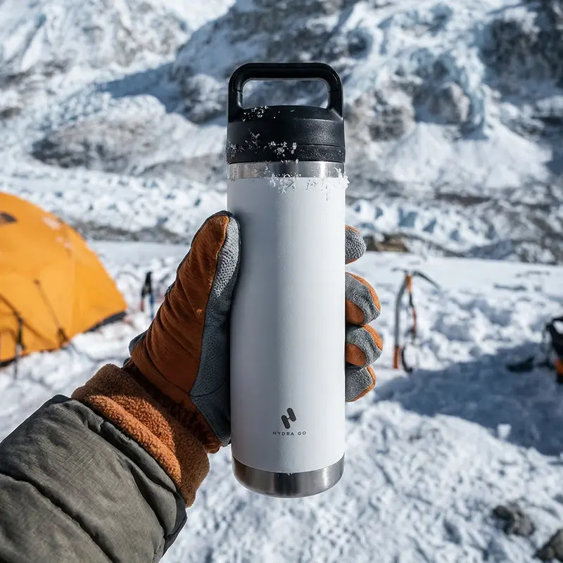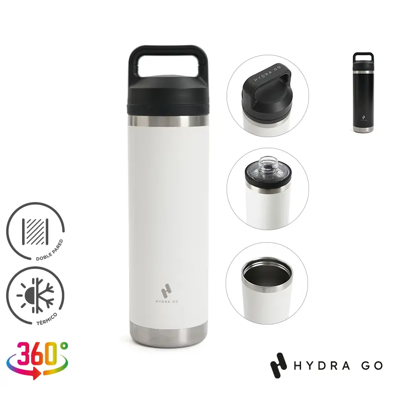 Botella térmica con manija integrada fabricada en acero inoxidable. Hecha con cuerpo interior de acero inoxidable 304, exterior y base de acero inoxidable 201 y tapa de polipropileno, AS y silicona. Cuenta con doble pared aislante, tapa a rosca con cierre hermético y manija ergonómica incorporada para fácil transporte. Es ideal para mantener tus bebidas frías o calientes durante el día, perfecta para la oficina, actividades al aire libre o viajes.