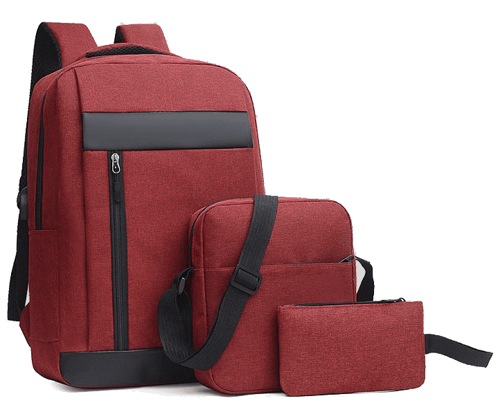 MEDIDAS: Mochila 42cm alto x 26,5cm ancho x 11cm profundidad. Bandolera 21cm de alto x 20 cm de ancho x 5cm de profundidad. Portadocumentos de 17.5cm x 10cm.