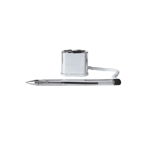 Bolígrafo con base y cable de sujeción