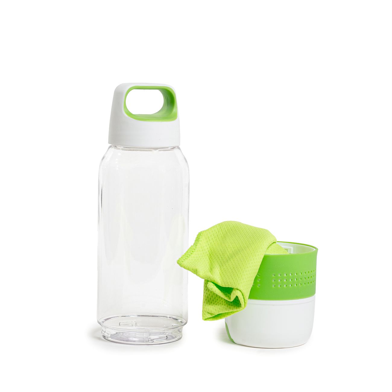 Botella PVC cristal con toalla de microfibra
