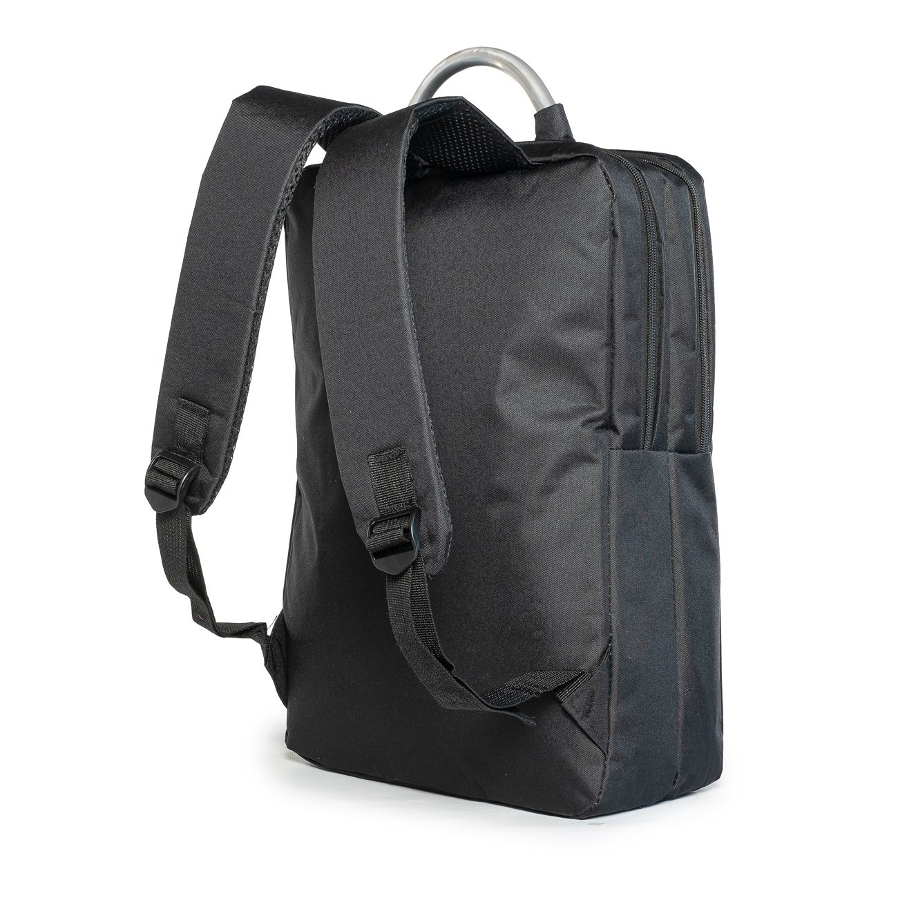 Interior forrado y acolchado. Manija de sujección superior en aluminio. Correas acolchadas ajustables.