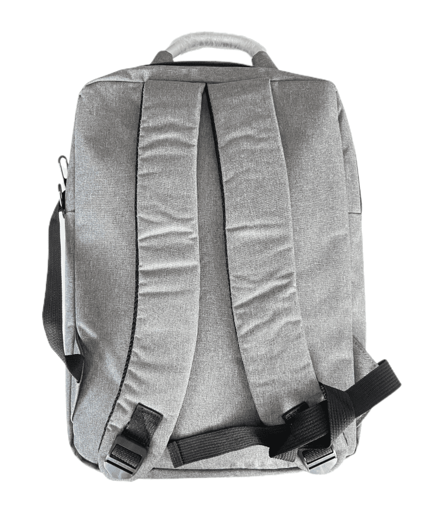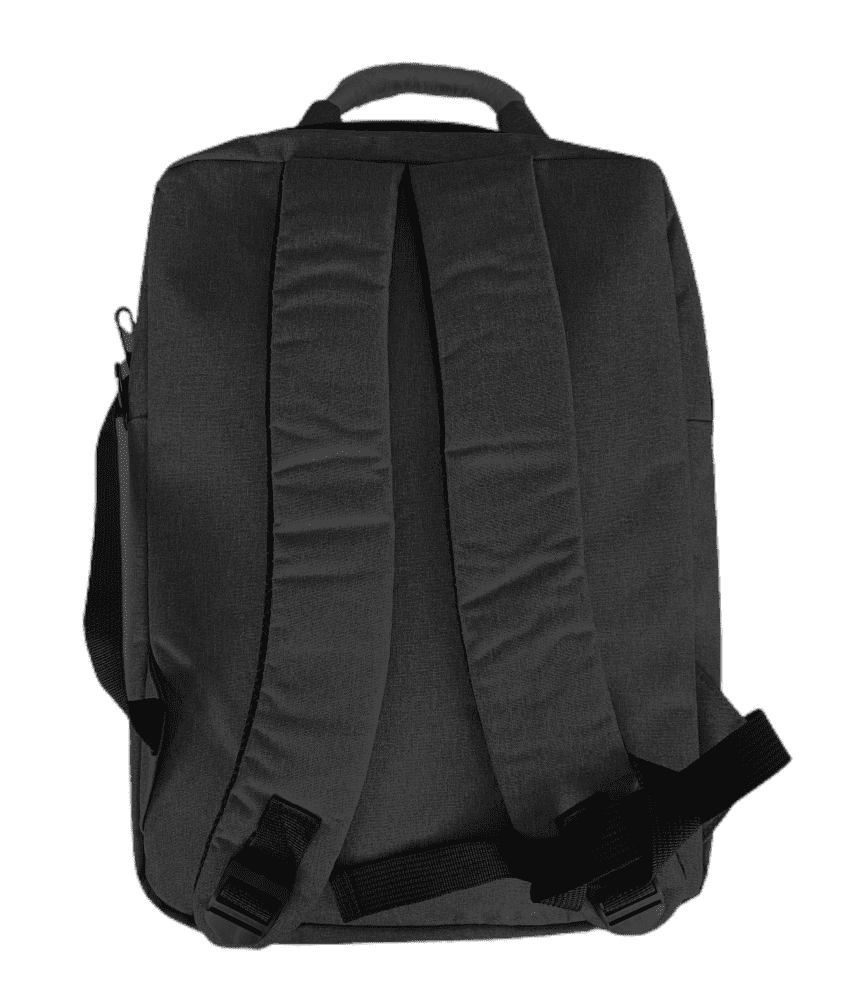 DESCRIPCIÓN: Presenta un bolsillo en el frente con cierre oculto y chapa en su lateral de 5cm x 1cm para poder grabar una inscripción. Luego dos compartimientos, el primero con un cierre doble, el segundo y principal, también con cierre doble que contiene sobre el sector de la espalda el bolsillo porta notebook con sujetador con velcro con capacidad para introducir una notebook de hasta 17″.