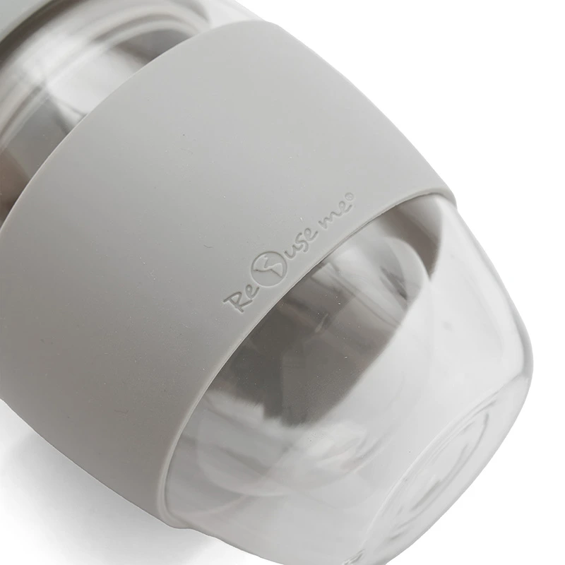 Cuenta con una banda de silicona gris antideslizante personalizable. Con una capacidad de 350 ml, es ideal para disfrutar de tus bebidas favoritas en cualquier momento del día.