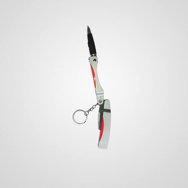 Descripción: Desplegable con linterna y bolígrafo incorporados. Posee aro llavero.