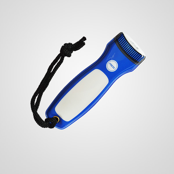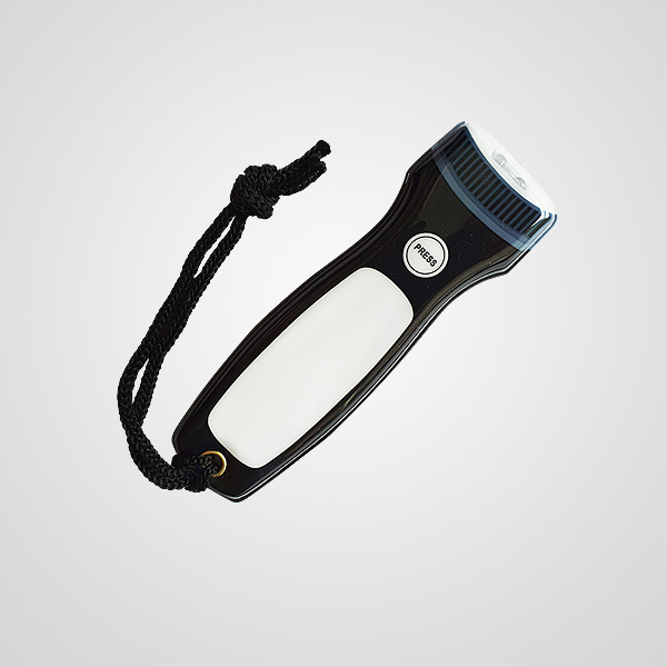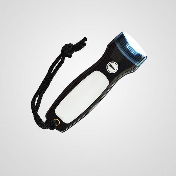 Descripción: Linterna con luz a presión, doble led, imantada para fijar en cualquier superficie metálica. Provee una cinta colgante.