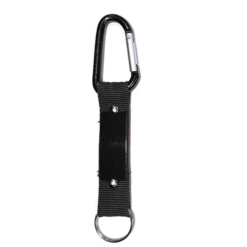 Llavero tejido de Polyester con un mosquetón de seguridad y una placa de metal para personalizar. La placa puede ser utlizada para domes o grabado láser. Medidas: 13 cm x 3,1 cm incluído el anillo (anillo de 25 mm). Tahg
