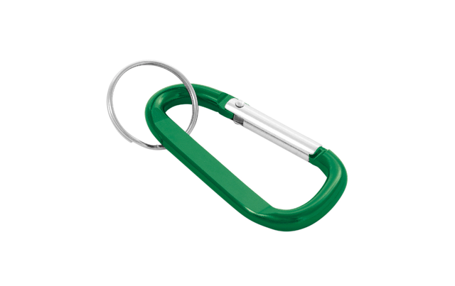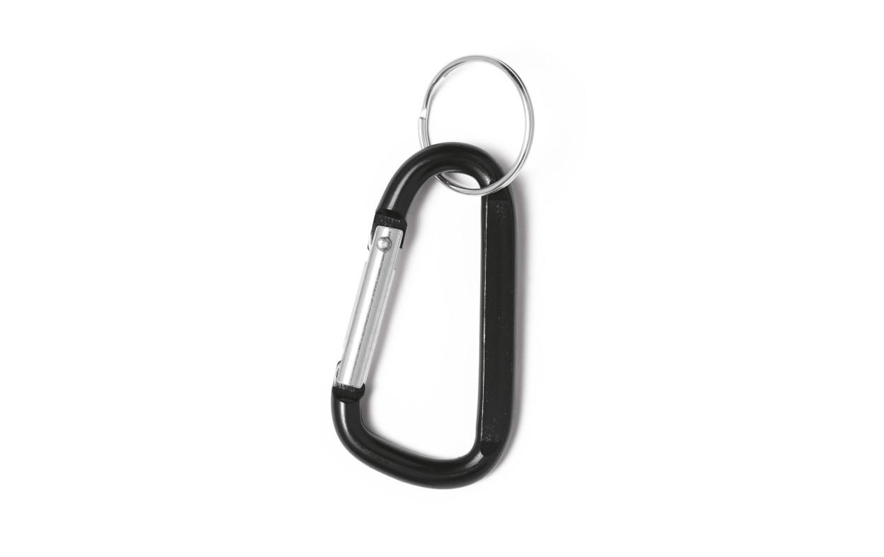Mosquetón de aluminio con argolla para llavero y área plana para la personalización. Accesorio ideal para usar con llaveros, botellas de hidratación o vasos térmicos, etc. No es apto para practicar escalada.