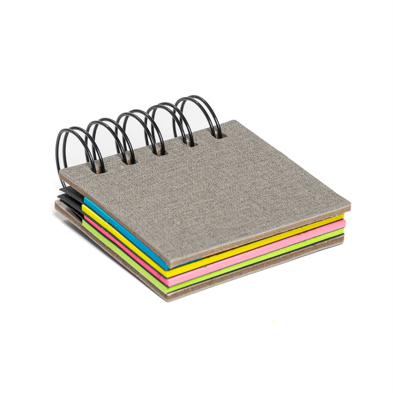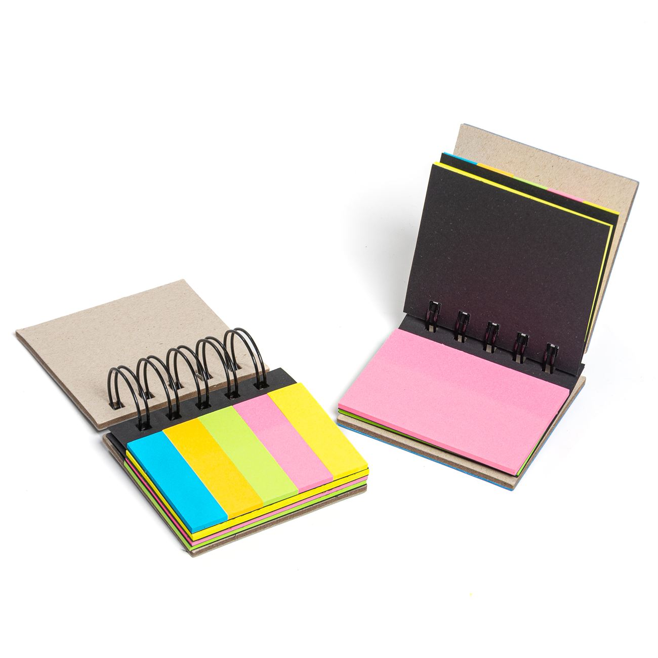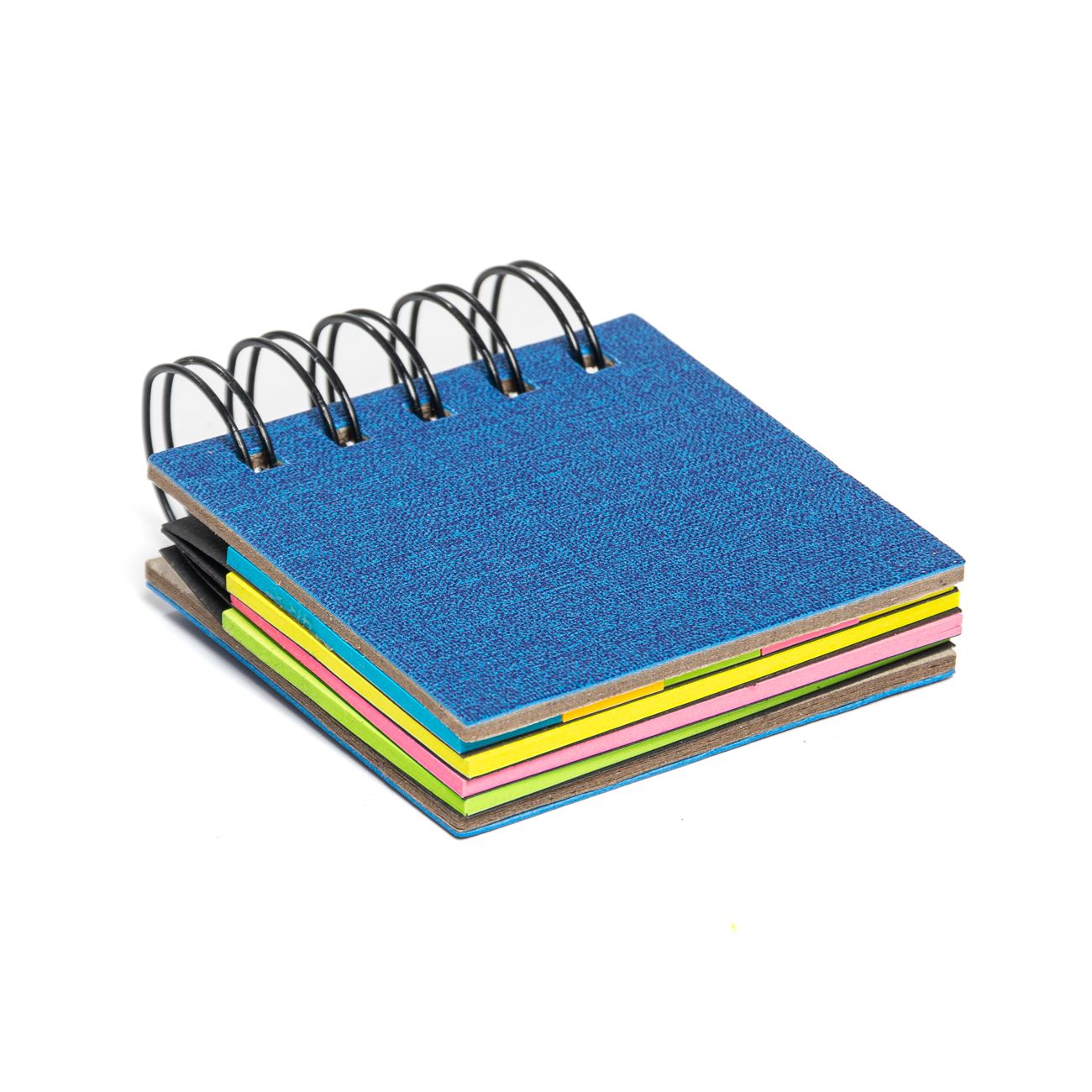 Descripción: Block anillado contenedor de memos adhesivos, posee 3 blocks con 25 notas de 7,5*4,5cm y uno dividido en 5 chicos.
