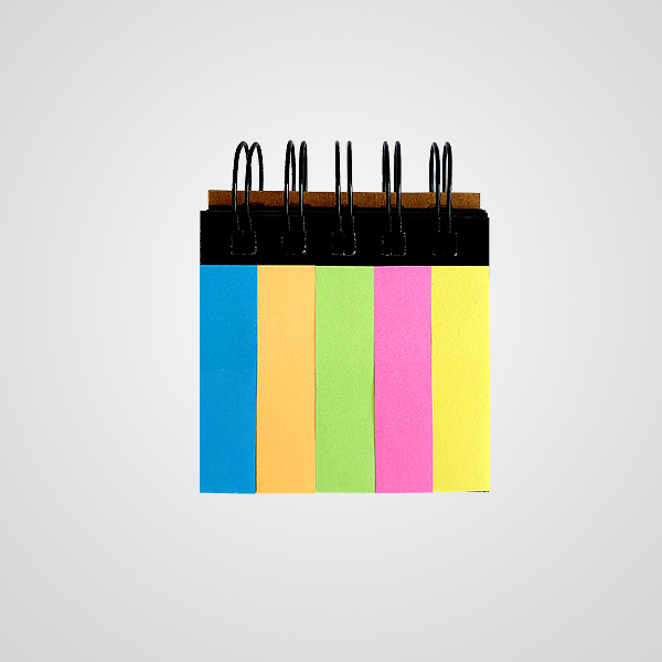 Descripción: Block anillado contenedor de memos adhesivos, posee 3 blocks con 25 notas de 7,5*4,5cm y uno dividido en 5 chicos.