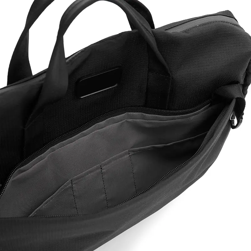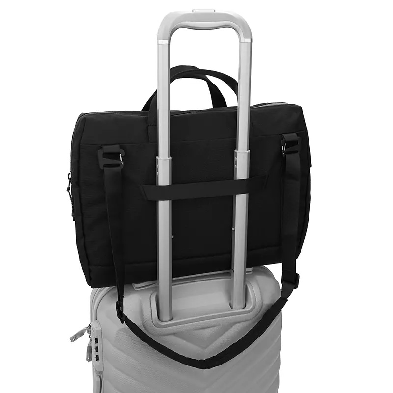 Maletín para ordenador fabricado con OceanGuard™, un tejido resistente elaborado a partir de plástico oceánico reciclado con certificación OceanCycle. Cuenta con funda acolchada para laptop de hasta 16″, bolsillo interior y frontal ambos con cierre, correa para maletas con ruedas y correa para el hombro extraíble incluida. Es ideal para desplazamientos diarios, trabajo remoto o transporte diario, ya que es ligero, duradero y resistente al agua, creado para ayudar a proteger nuestros océanos.