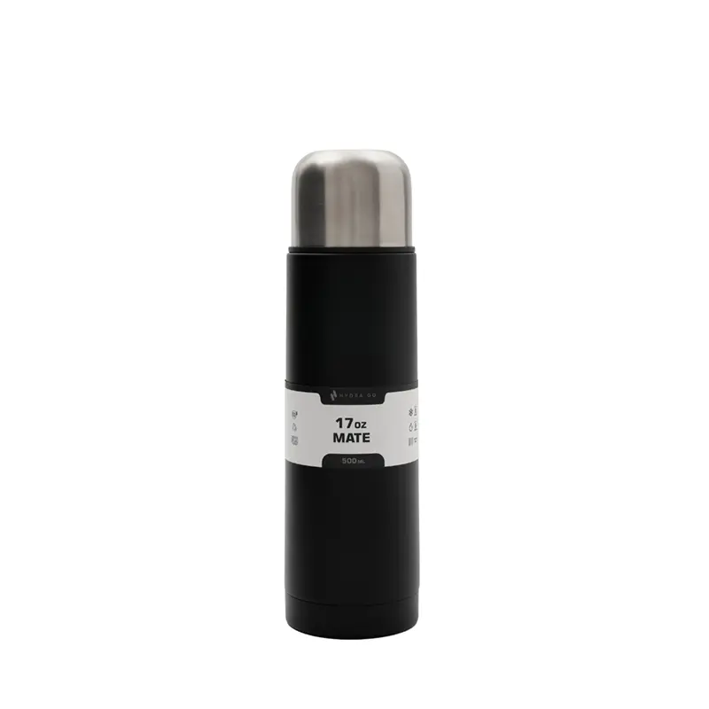 Mate listo de acero inoxidable de doble pared, fabricado en acero 304 con acabado powder coating color negro. Cuenta con bombilla incorporada de acero desmontable, tapa con rosca de acero inoxidable y cuerpo térmico que mantiene la temperatura. Es ideal para tomar mate de forma práctica, tanto en el trabajo como al aire libre, sin necesidad de llevar accesorios adicionales, y gracias a su diseño versátil, también puede utilizarse únicamente como termo o como recipiente para mate según la ocasión.