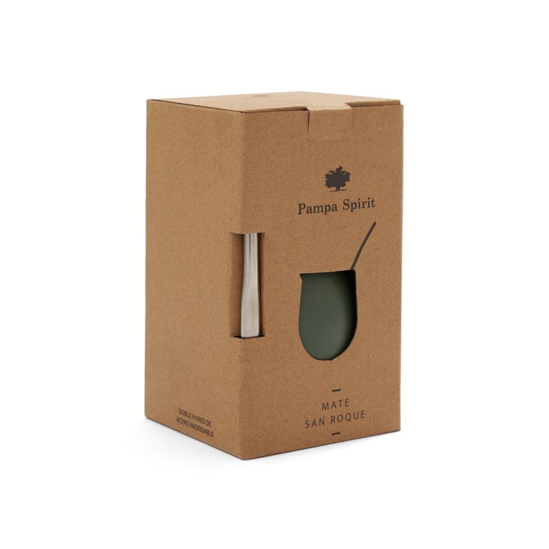 Mate confeccionado en doble pared de acero inoxidable 304. Cuenta con tapa antiderrame y bombilla de acero. Capacidad: 220 ml.