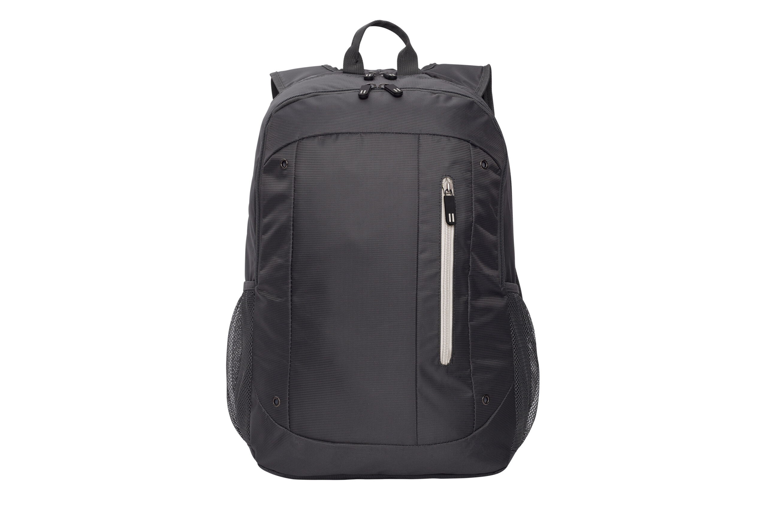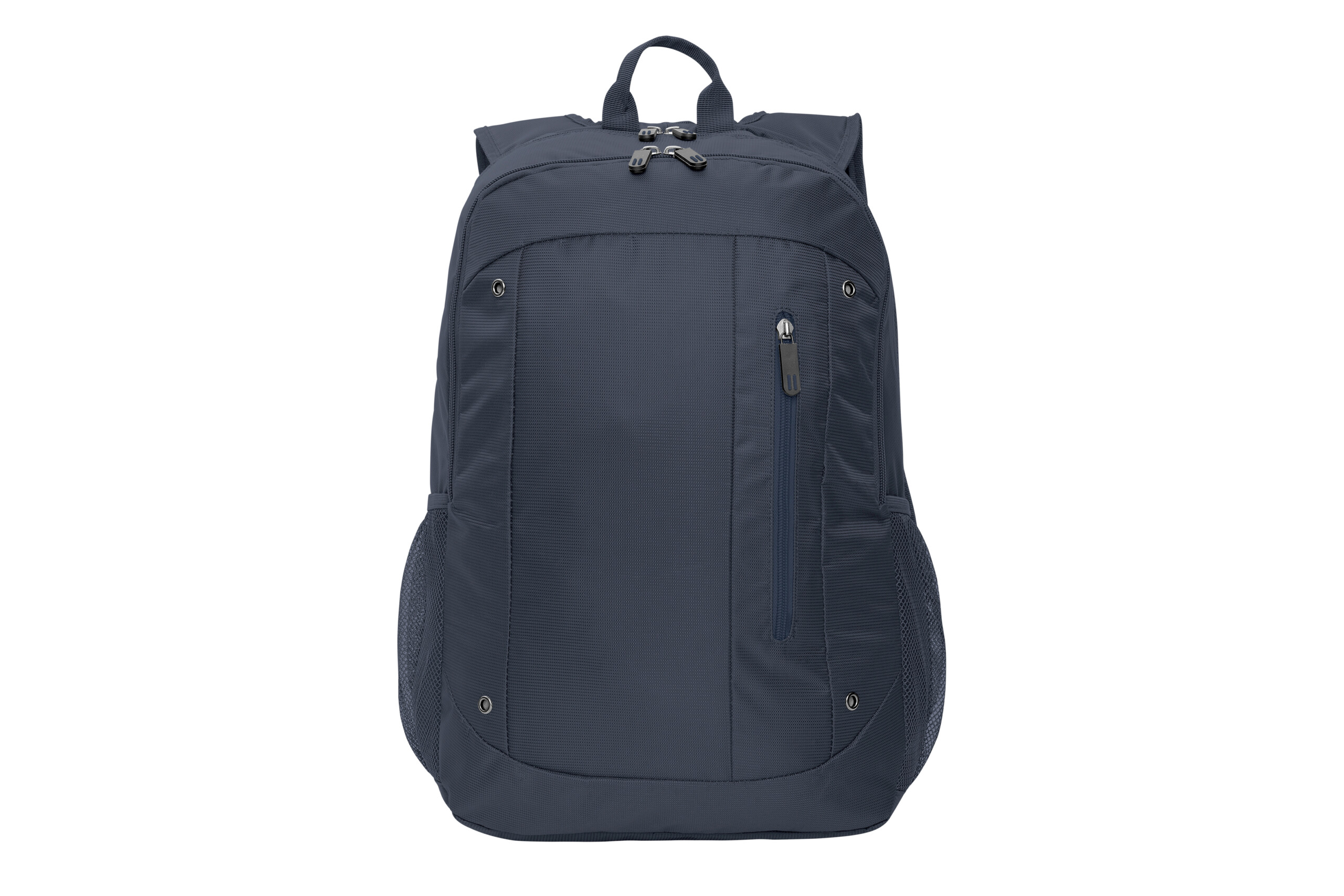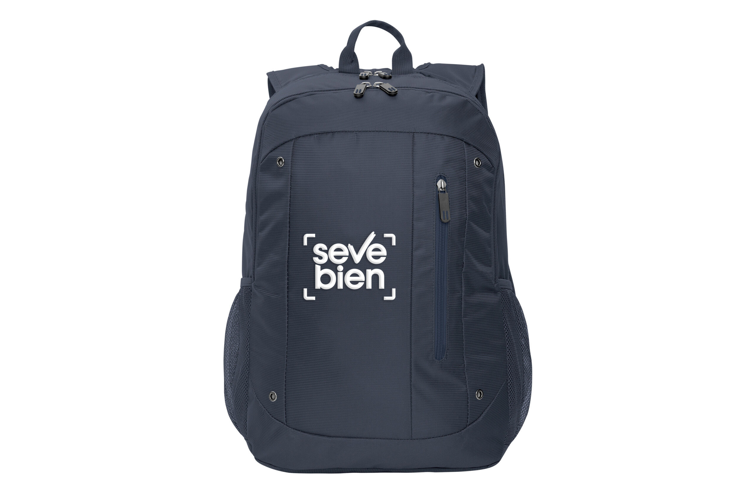 32 x 47 x 17 cm. Capacidad 25 litros aprox. Jacquard Poliéster 420D. Mochila portanotebook. Dos compartimentos con cierre. Compartimento principal con división acolchada porta notebook de hasta 16” con bolsillo y el segundo con tres espacios contenedores. Bolsillo frontal con cierre en color y dos bolsillos de red laterales. Cierres metálicos con tiradores de goma con detalles de color. Correas regulables y espalda acolchadas.