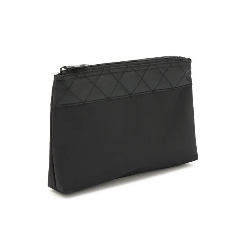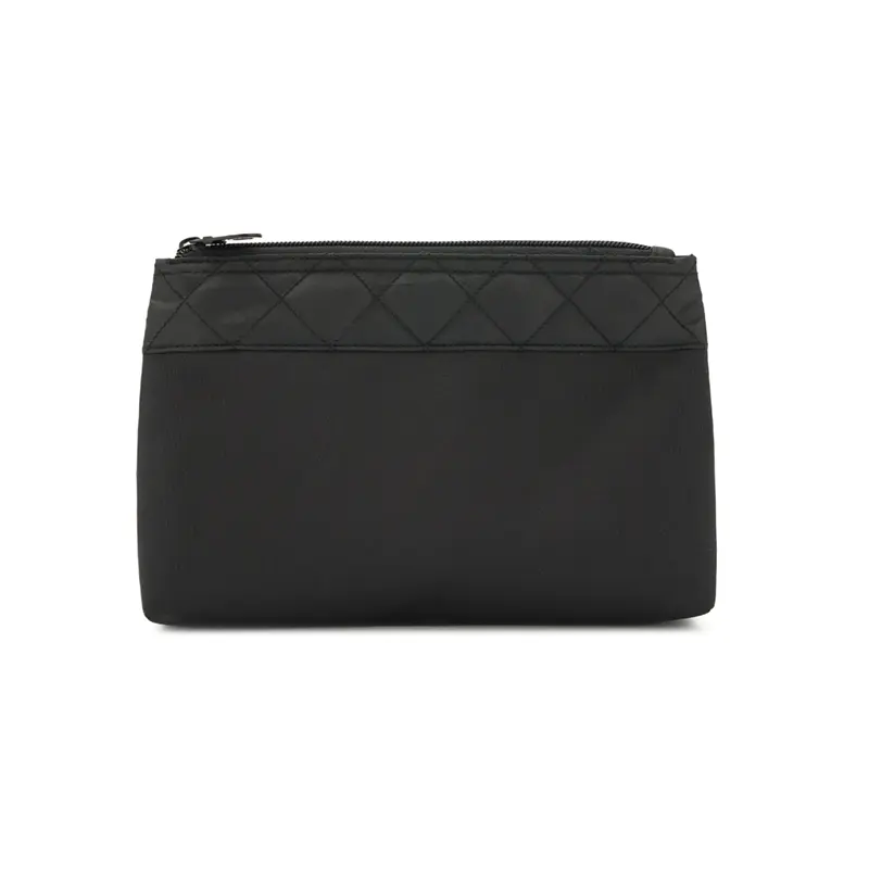 Neceser practico con cierre, confeccionado en microfibra. Es ideal para guardar cosméticos, accesorios o artículos personales. Incluye costura decorativa en la parte superior.