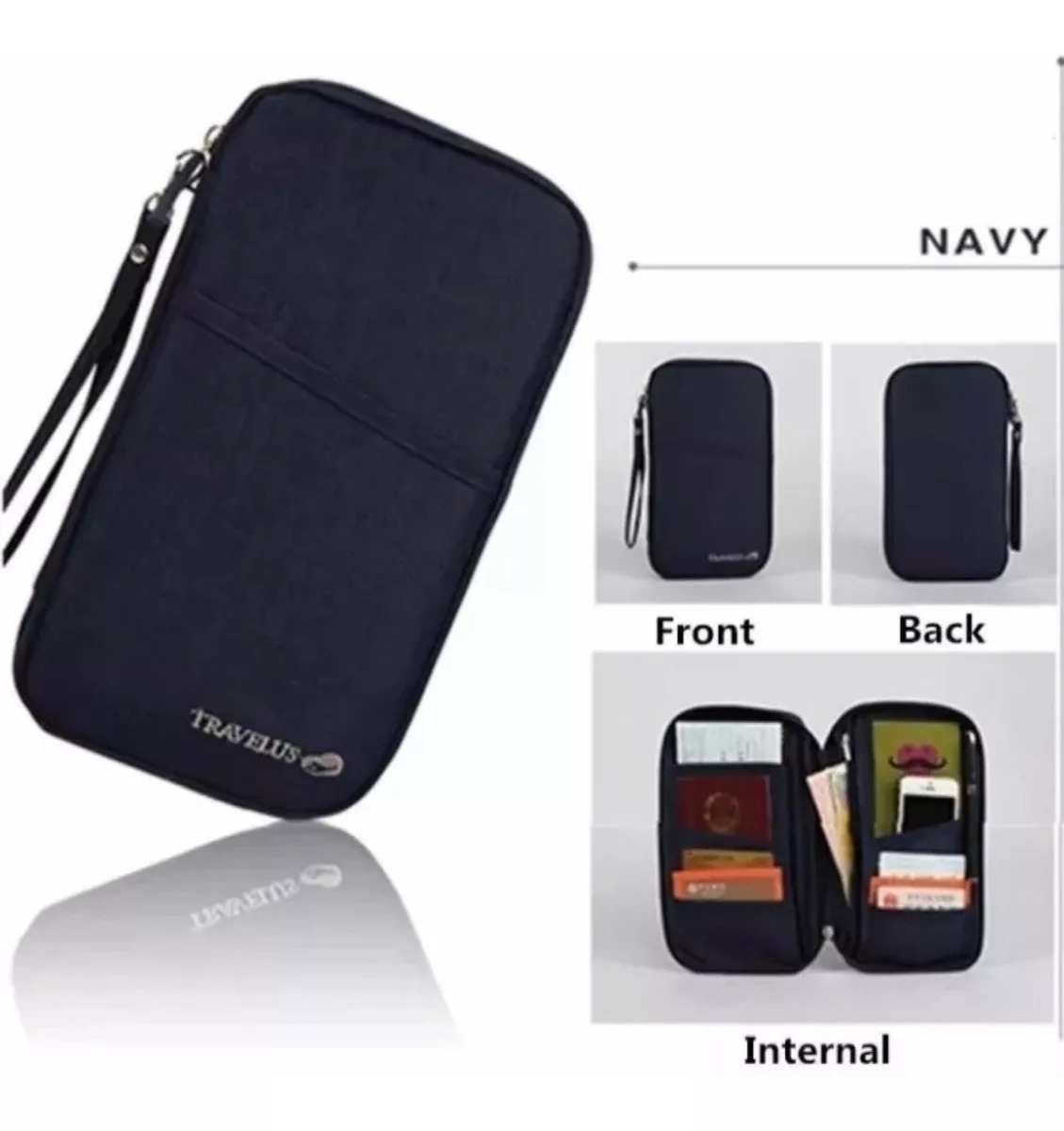Organizador de documentos de viaje gris o azul