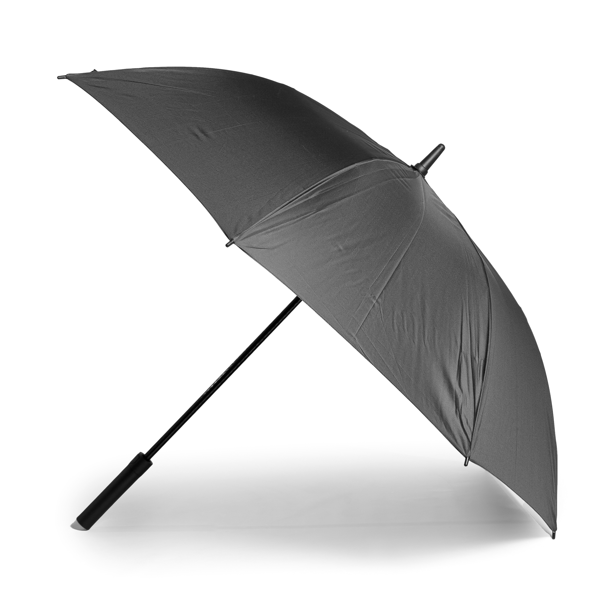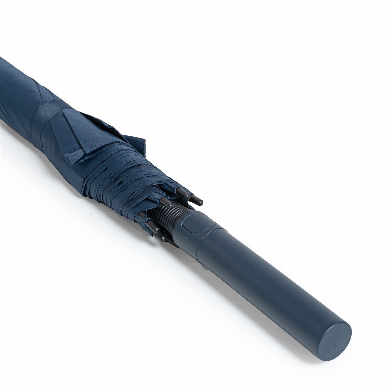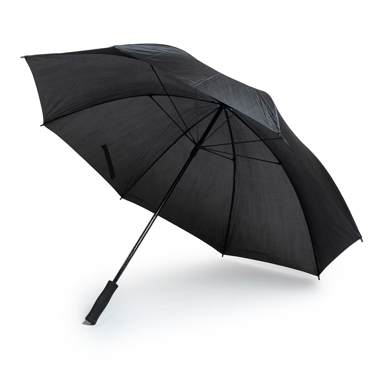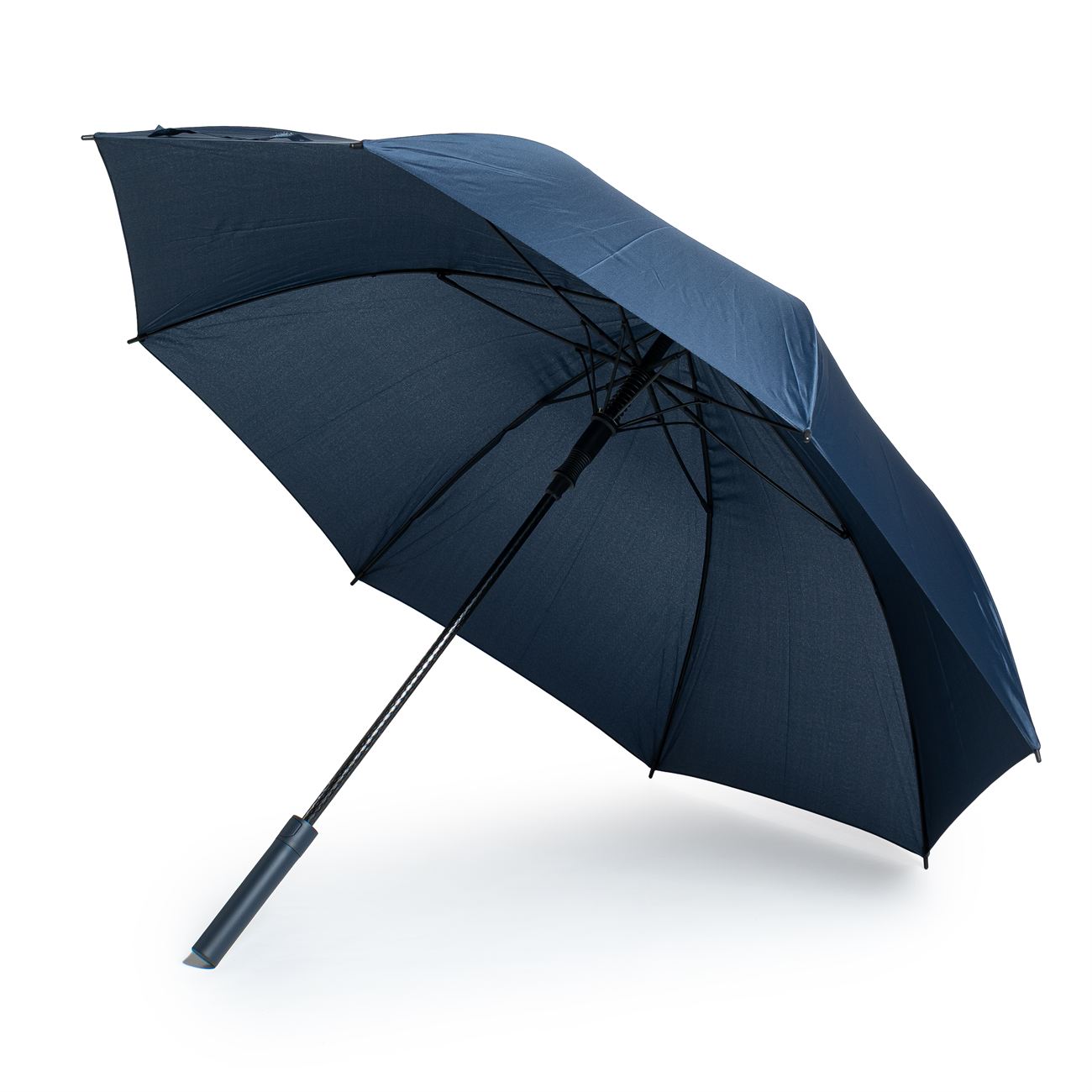 Descripción: Paraguas tipo golf de apertura automática. Mango de goma con botón de apertura. Vara principal y techo de fibra de vidrio, varillas plásticas reforzadas, puntera y terminales en plástico duro.