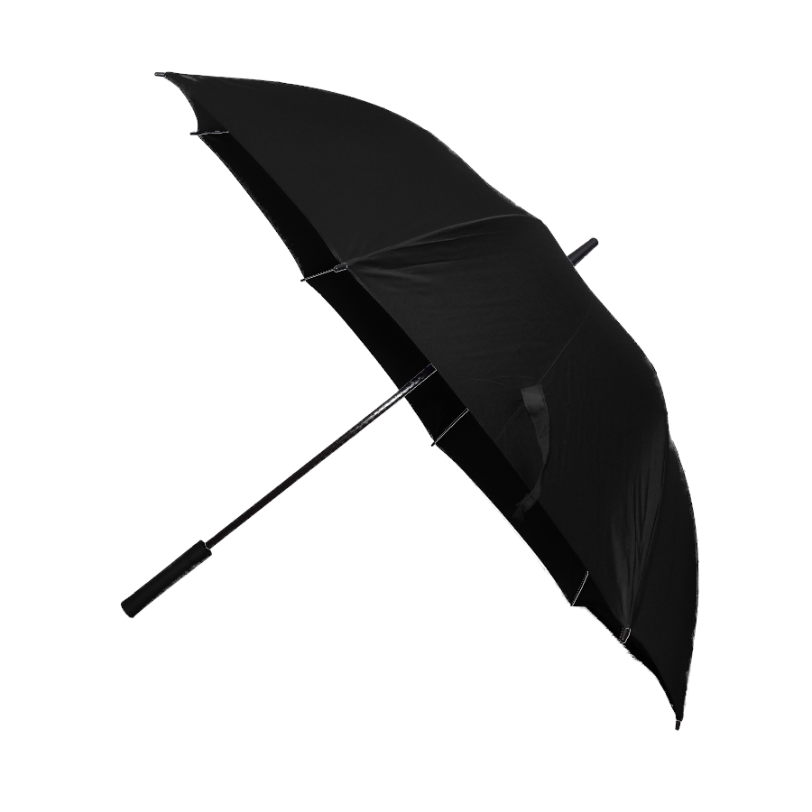 Descripción: Paraguas tipo golf de apertura automática. Mango de goma con botón de apertura. Vara principal y techo de fibra de vidrio, varillas plásticas reforzadas, puntera y terminales en plástico duro.