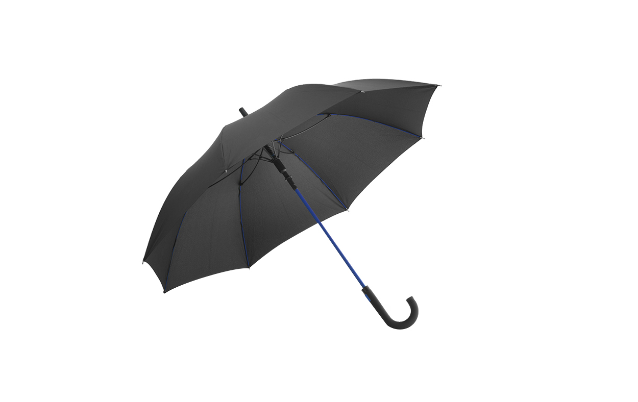 Paraguas de 8 gajos con estructura y varillas de fibra de vidrio de colores. Con mecanismo de apertura automática. Material: Poliéster.