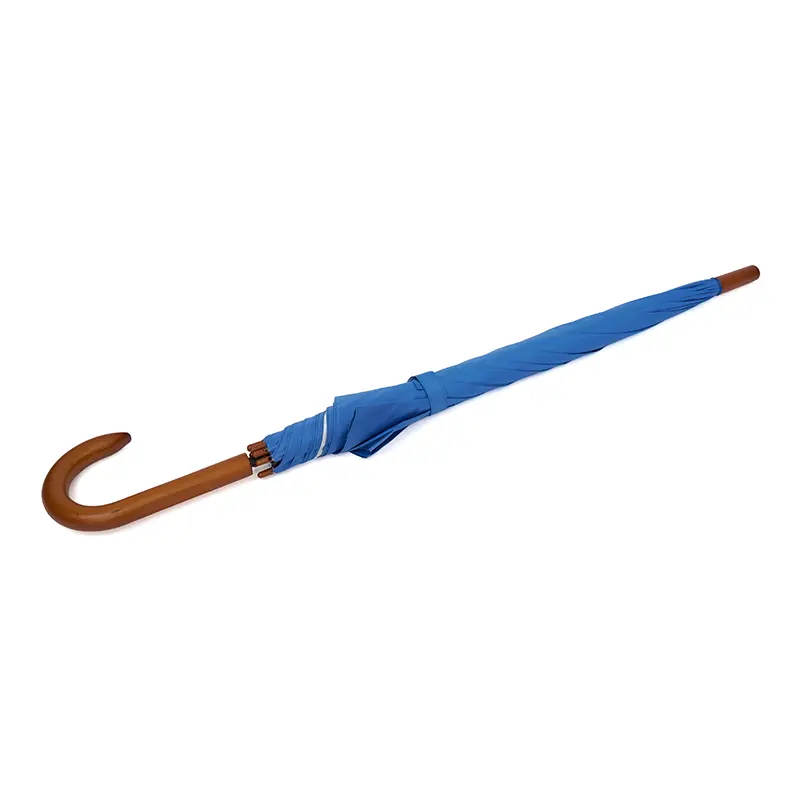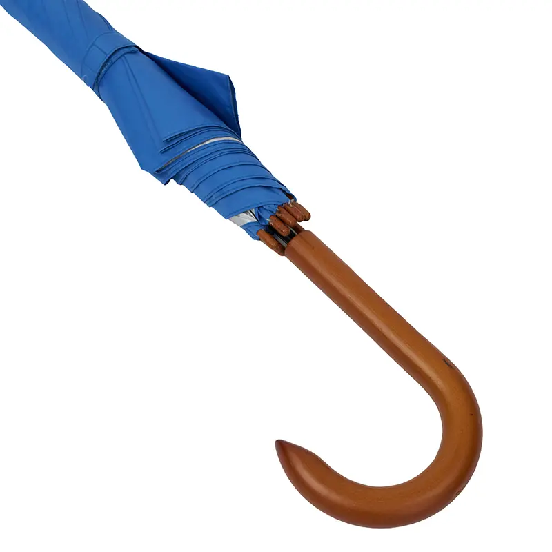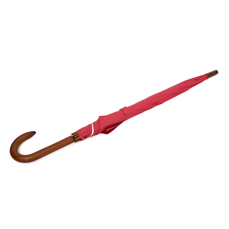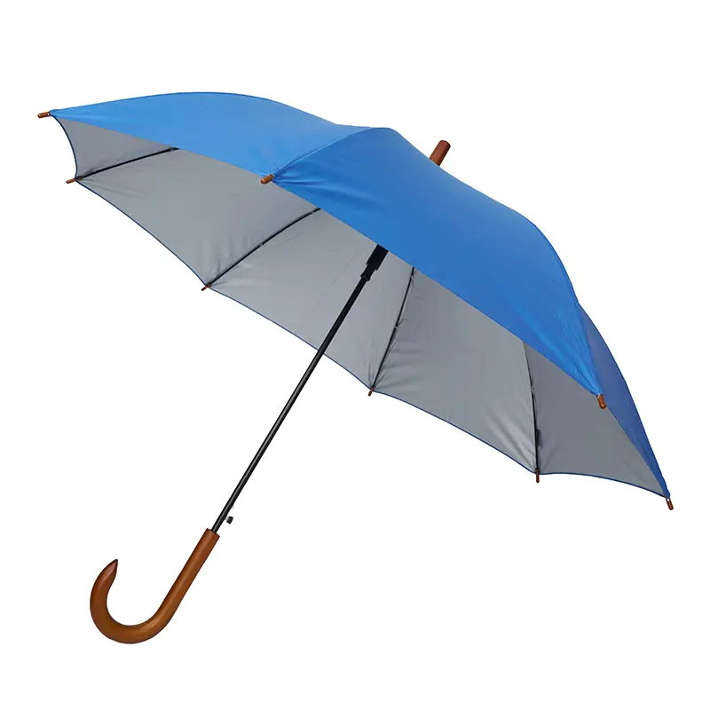 Paraguas street de 8 gajos con mango curvo de madera y estructura metálica negra. Con sistema de apertura automática. Tela de interior silver combinada con exterior en colores. Material: Pongee con interior silver. Medidas: 80 cm x diámetro 105 cm. Tahg.